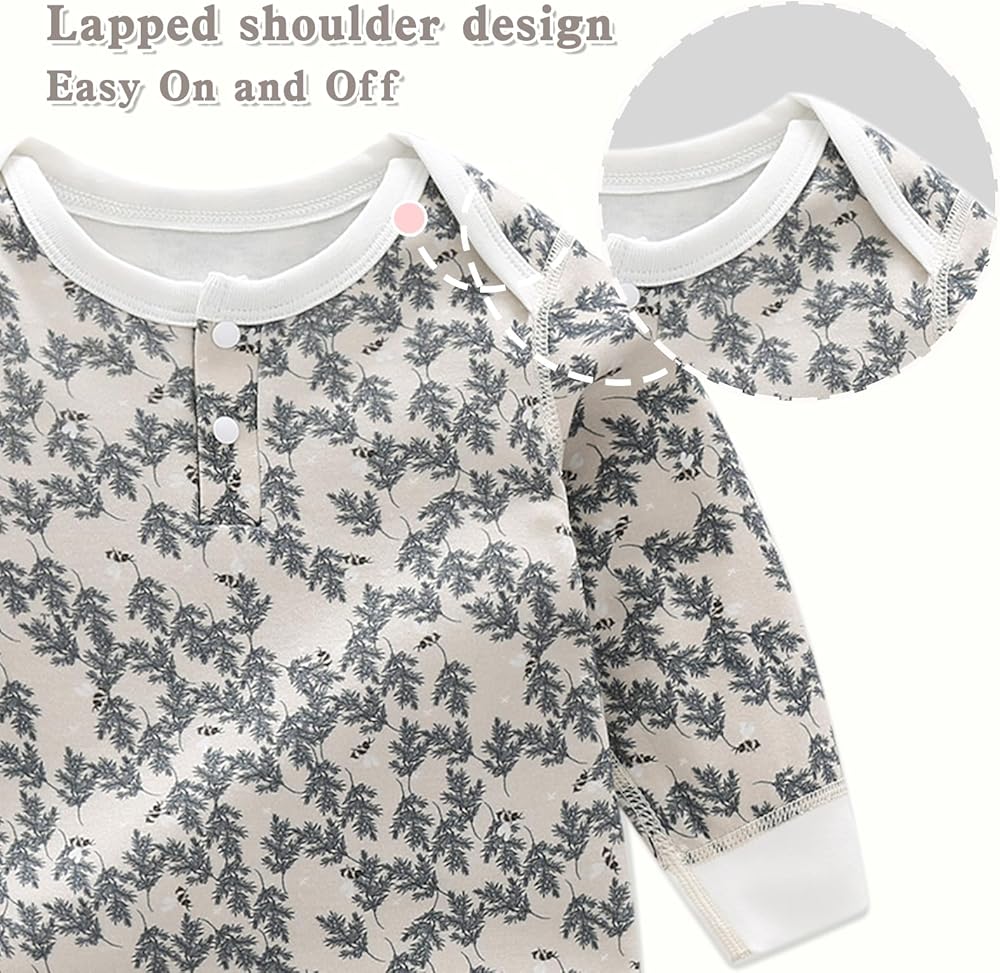 【Baby-soft Material】Made of 97% bamboo viscose and 3% spandex, our newborn baby clothes offer a flexible and baby-soft touch for your little one's skin. Perfect for year-round wear, these baby one-piece pajamas are warm enough for winter and breathable for summer.