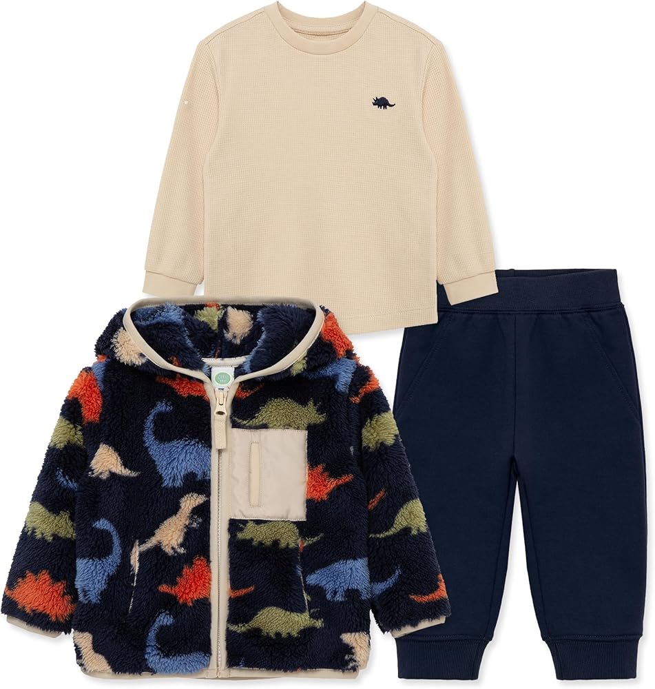 STYLISH WARMTH: Cozy and warm fleece material perfect for colder weather. Includes a stylish jacket, a long-sleeve top, and coordinating leggings. Full front zipper on the jacket for easy dressing.