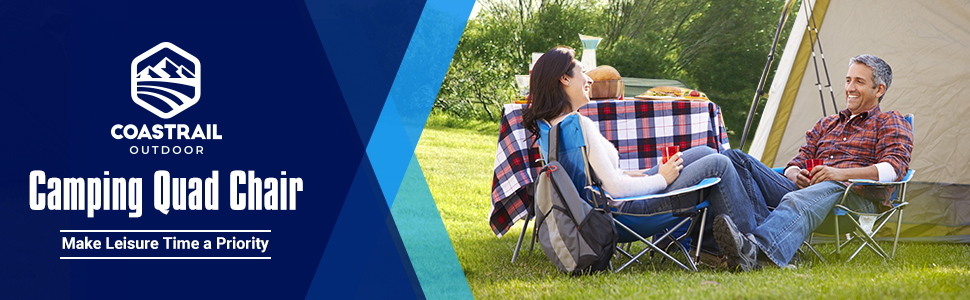 Coastrail Outdoor Padded Folding Camping Chair Quad Arm Chair Lawn Chair with Large Cup Holders, Side & Back Pocket for Camp, Outdoor, Indoor, Fishing, Supports 350lbs