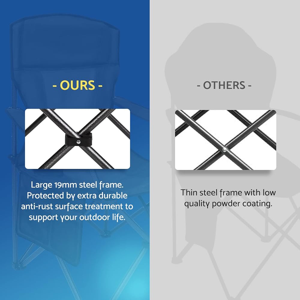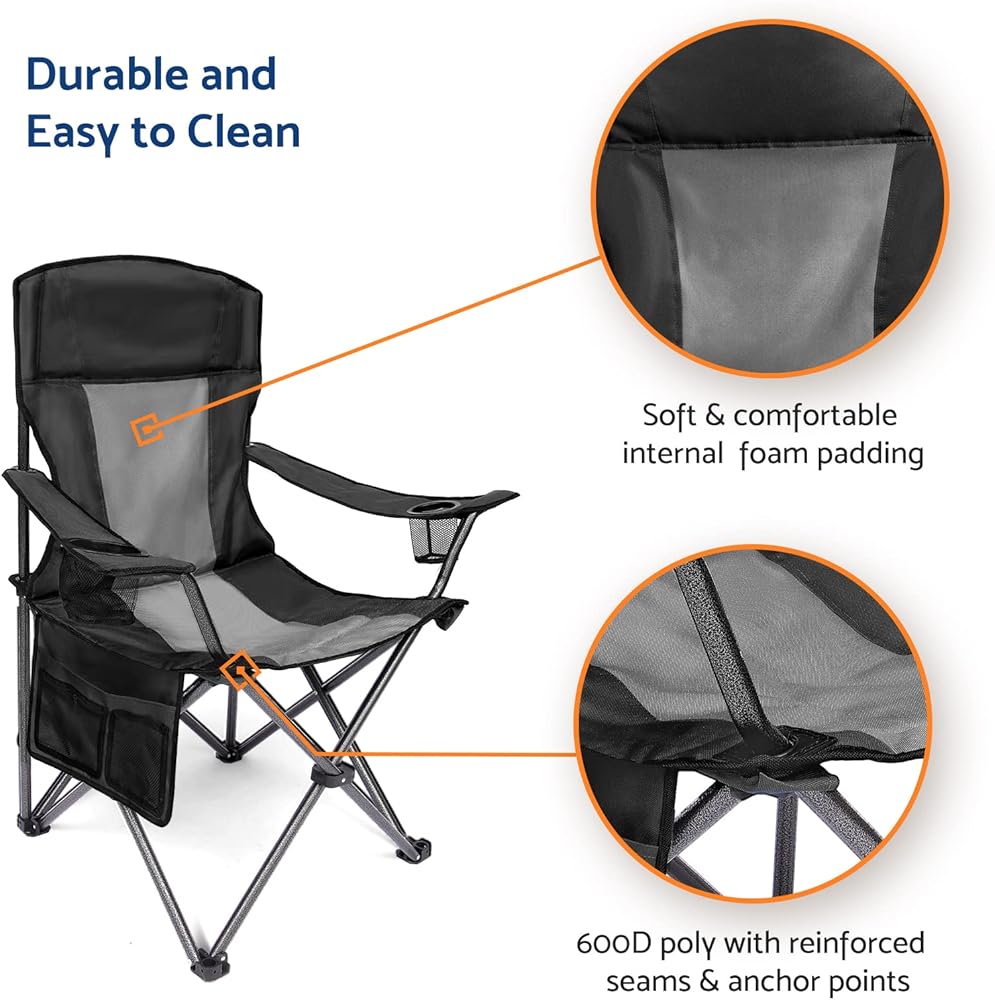 EXTRA COMFORT: The inner foam padding of the seat and backrest allows you to relax in soft comfort. Padded armrests make you more relaxed. Our lightweight folding chairs are made of high-density fabrics to maximize your outdoor lifestyle.