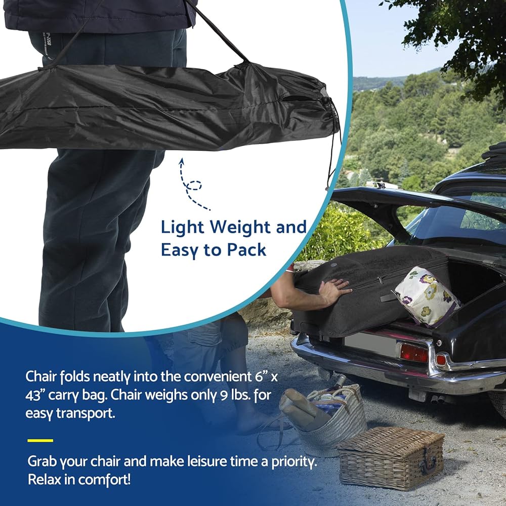 EASY TO TRANSPORT AND STORAGE: You'll love this lightweight camping chair for adult. Space-saving design folds down to a small (43" x 5.9" x 5.9") size for easy portability. Great lawn chair for adults with a carry bag for picnic or beach. great quad chair.