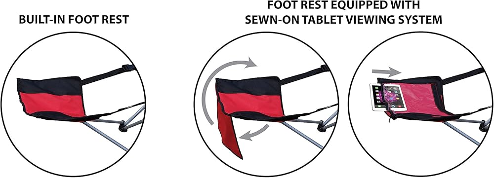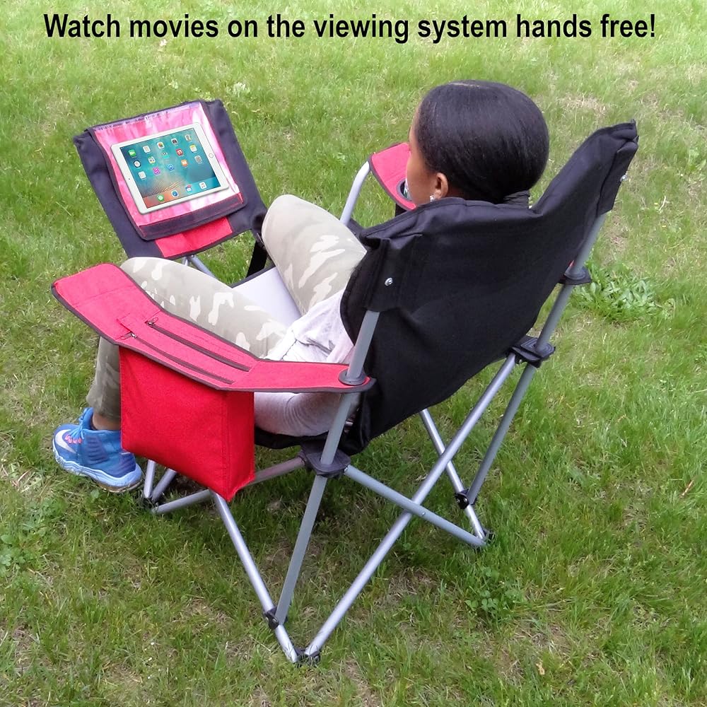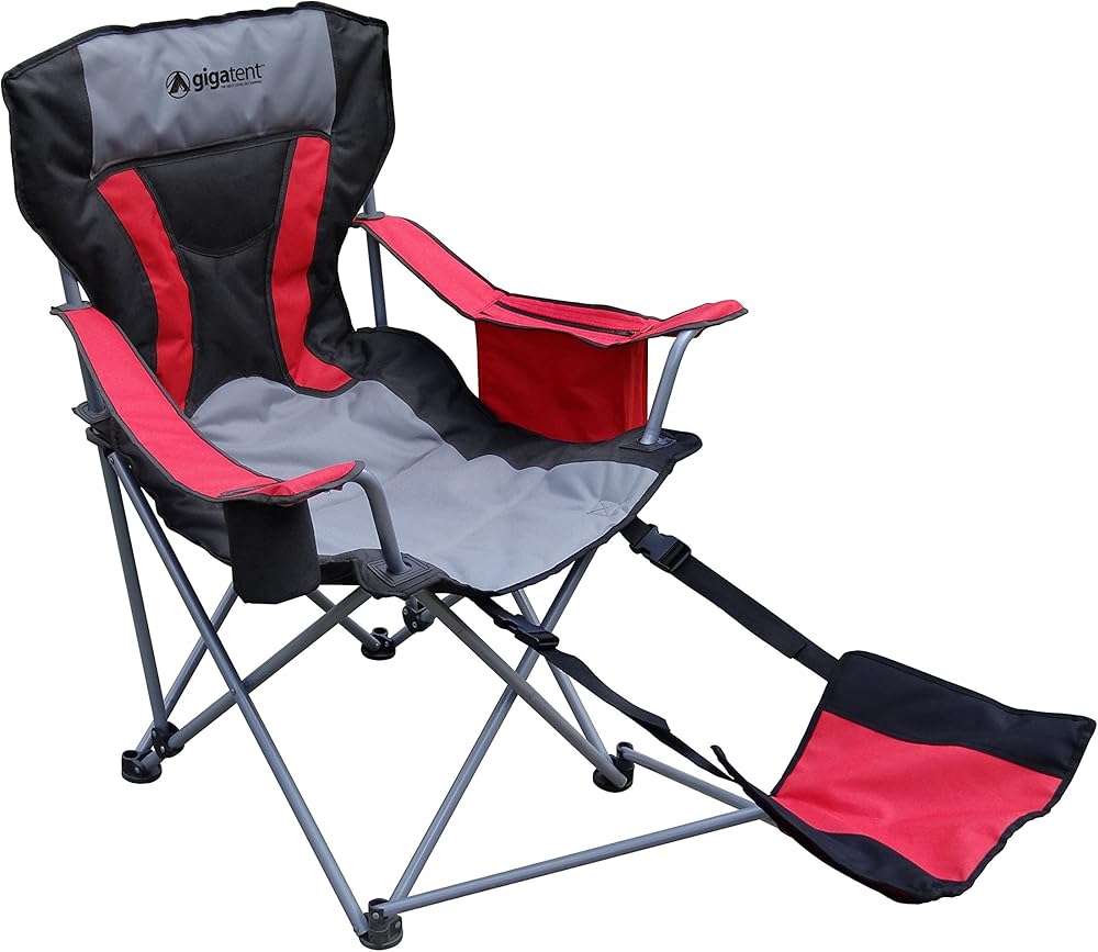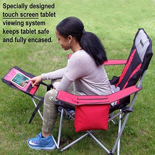 GigaTent Camping Chair with Foot Rest, Built-in Tablet/Cell Phone Viewing System, Built-in Cooler and Cup Holder (Red)