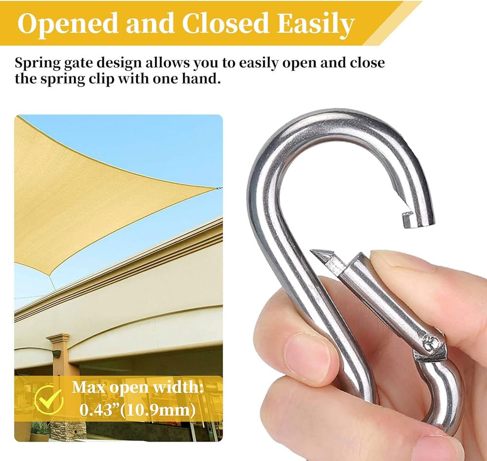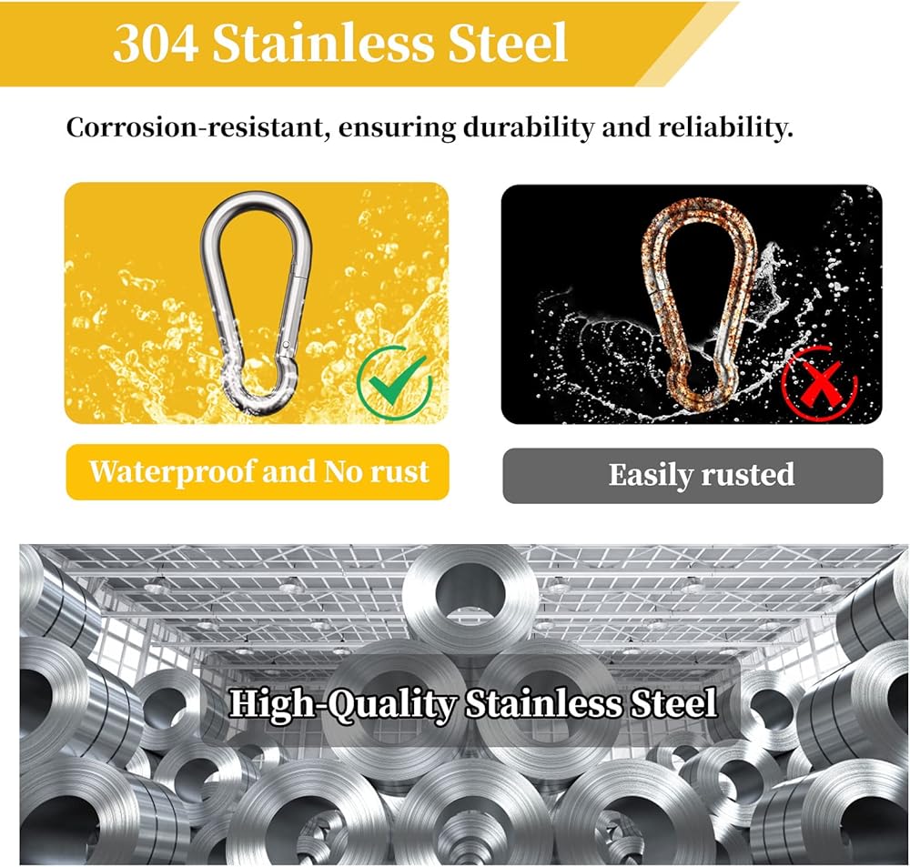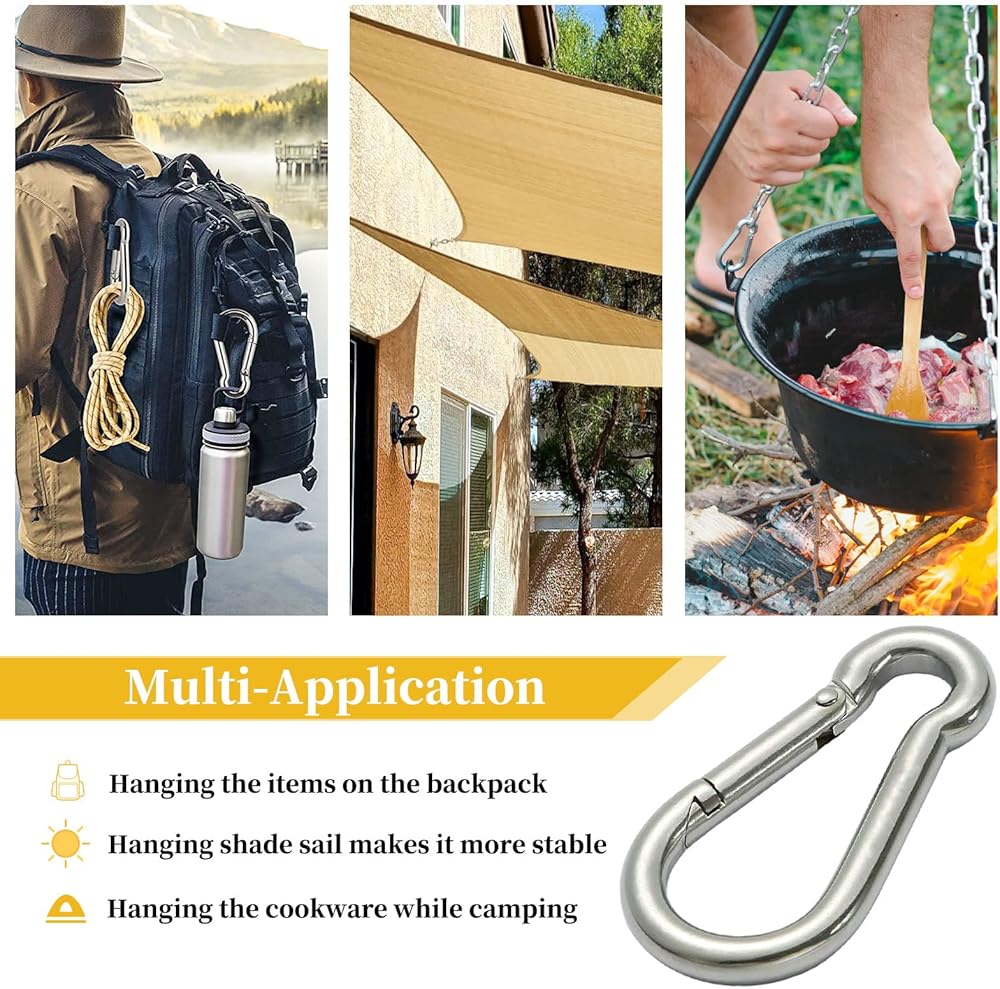 ✅ 【Industrial Grade stainless carabiner clip】- 304 Stainless Steel Spring Snap Link Hook has better corrosion resistance, which long works indoors or outdoors, moist environment as well. These snap hooks are available everywhere, the exercising kayaking, camping, and hunting are handy.