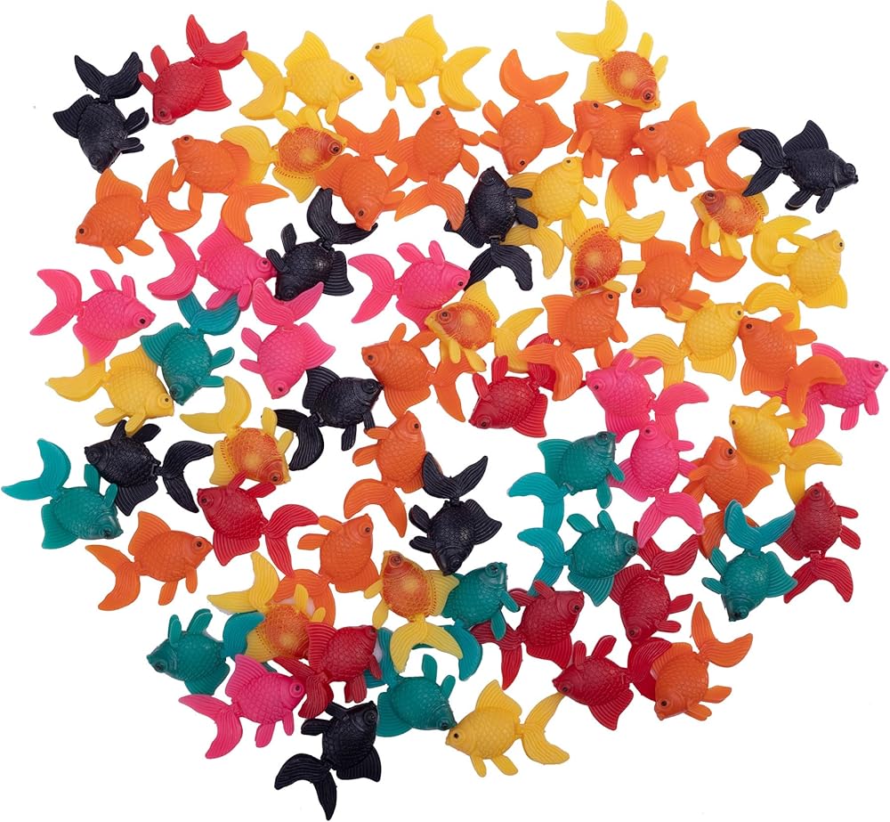 • Package includes: 64 pieces plastic fish in the color of orange, black,pink,yellow,green,gold,red, multiple colors and enough quantity to meet your different needs.
