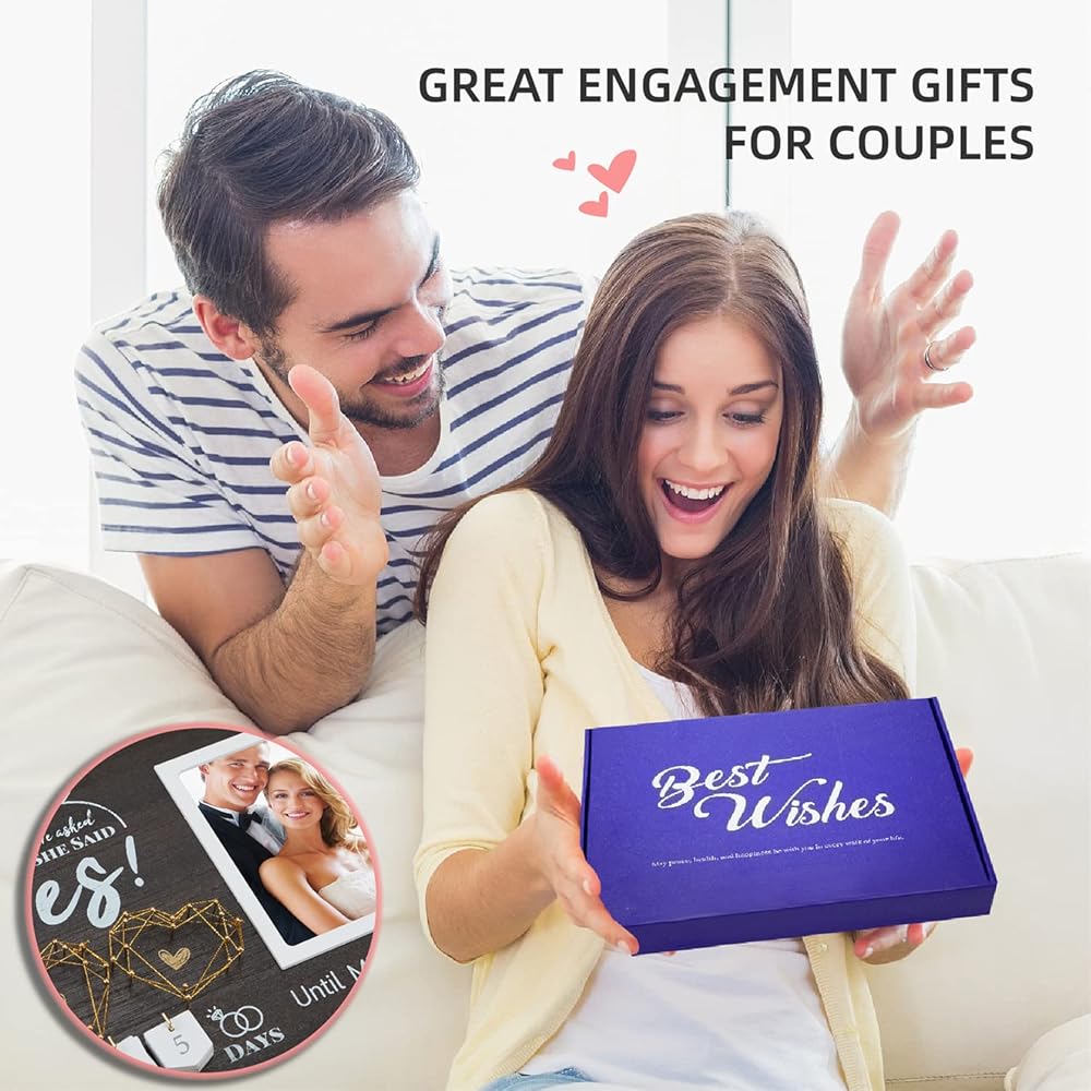 💕Gifts for newly engaged couples: The engagement frame makes the waiting a little more fun. Couples will love it and change the countdown number of pieces every day as we approach the big day. This Gift photo frame measures about 11.8 x 9.25 inches, made of environmentally friendly wood. You can either hang it on your wall or place it on top of a table. Perfect engagement gift ideas.