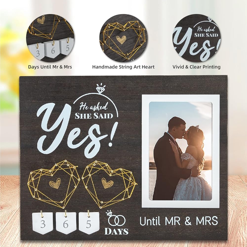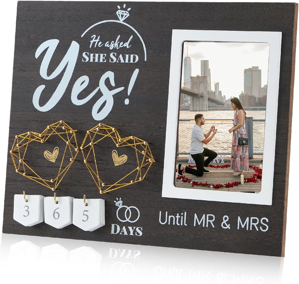 💕Wedding Countdown: Are you looking forward to the arrival of the special day? The romantic countdown frame comes with the countdown calendar and quotes that "XX days until Mr & Mrs.", the wedding countdown brings you closer to your special day. Definitely a great gift for a newly engaged couple. A fun way to count down for the big day. Cool engagement gifts. Great fiance gifts for her.