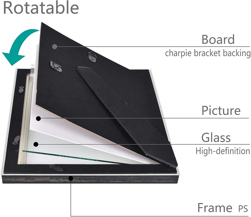 خلفية قابلة للدوران: قم بتدوير الغطاء الخلفي ووضع الصورة فيه، ثم ثبته باستخدام عروات دوارة "سهلة الاستخدام" في الخلف لإكمال التثبيت. سهل التشغيل، حتى الأطفال يمكنهم القيام بهذه المهمة البسيطة!