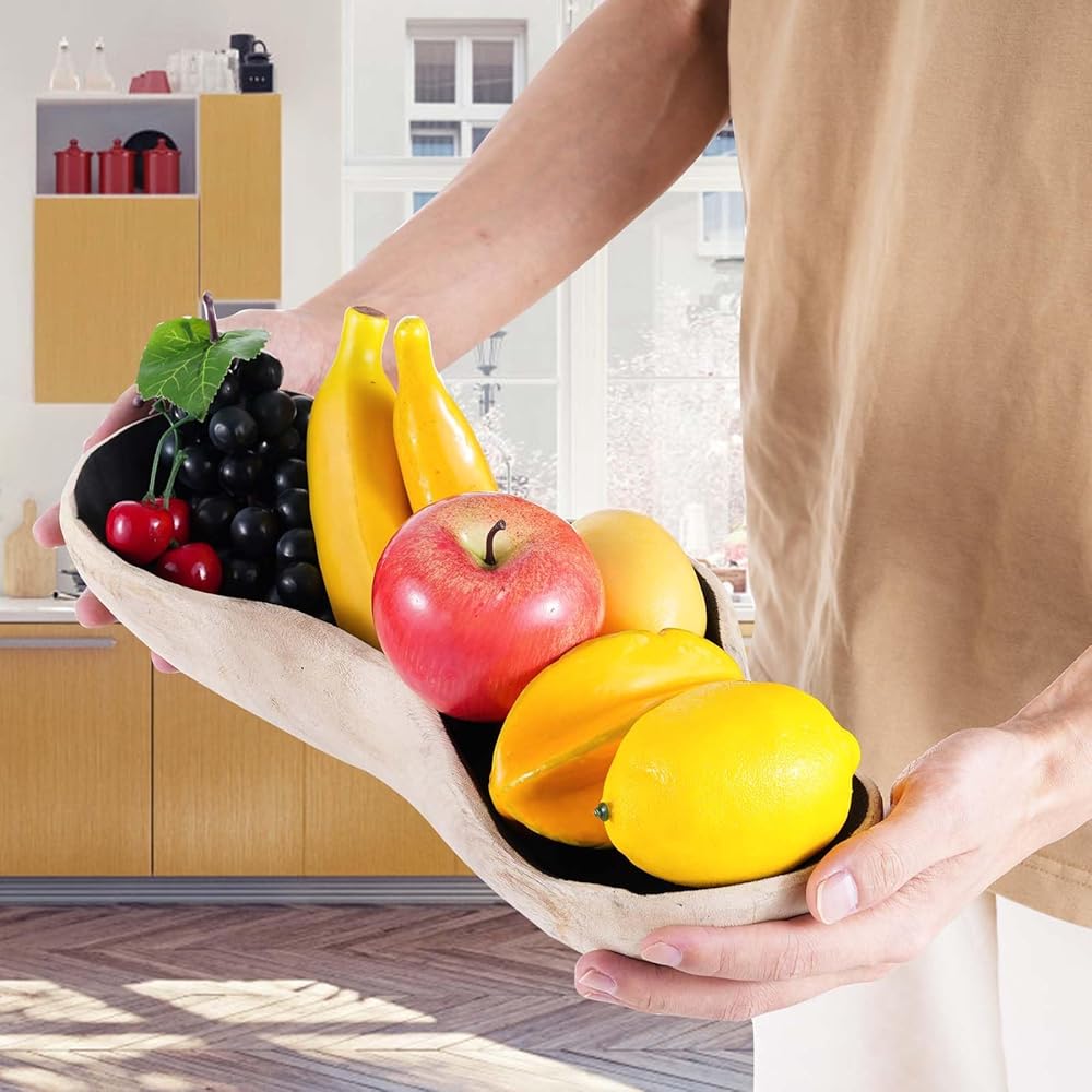 【Use】The wood fruit bowl can be used to place fruits, vegetables, candy, bread, cakes, cookies, dough. Besides, it can also place candles, wicker rattan balls, pine balls, crystal, stone, etc.