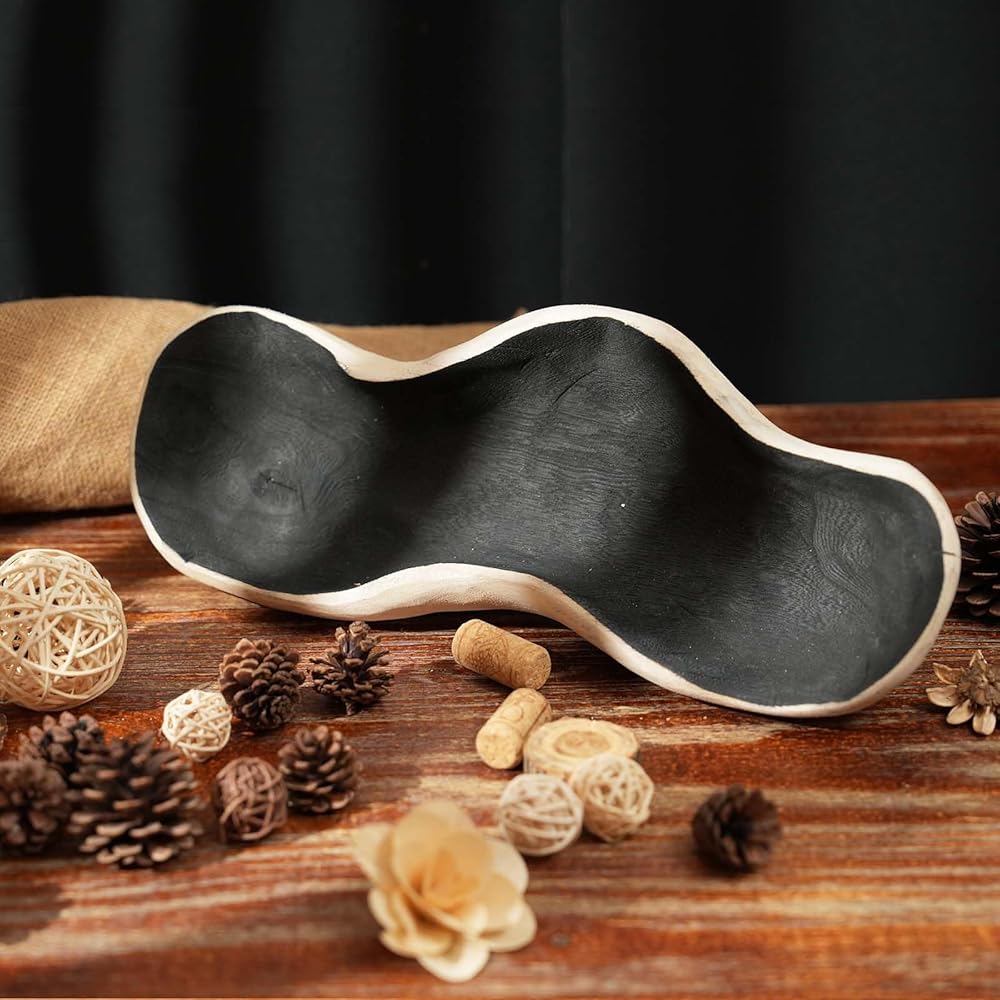 【Simple & Natural】The wavy edge design cutting of natural paulownia hardwood makes the wood grain of each plate unique. Medium,15.7"L x 6.3"Wx 3.1"H