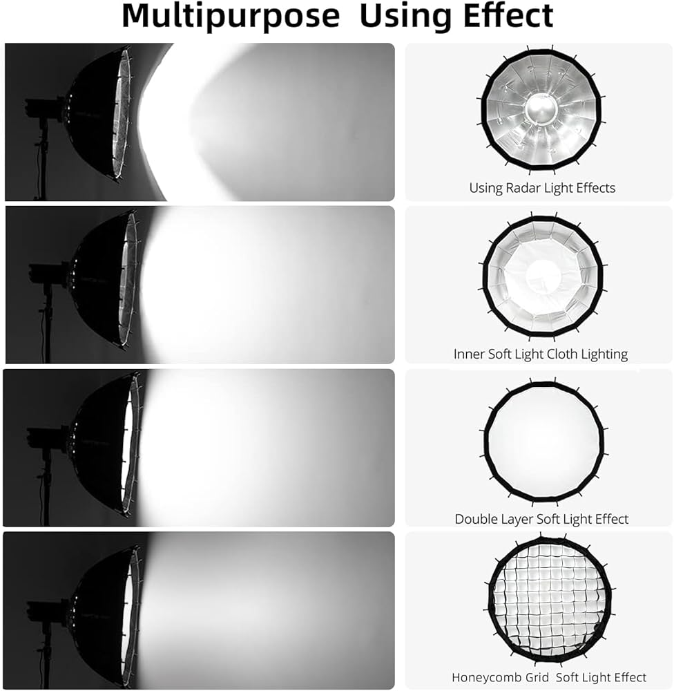 🏆【Reflector】 Unlike softboxes, this reflector provides directional lighting, delivering a softer yet defined light at the center of your subject.