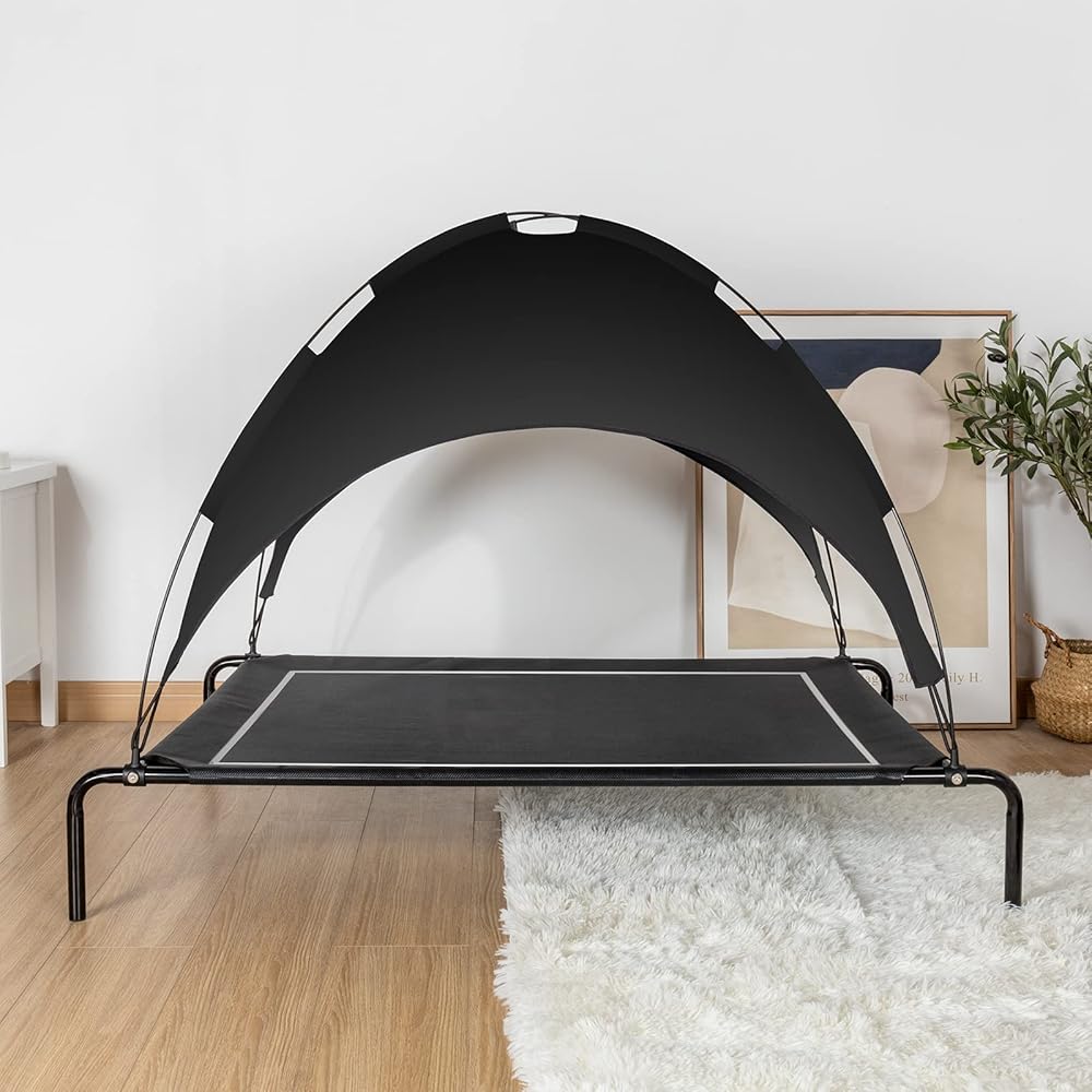 ANWA Raised Dog Bed with UV Protection Canopy Medium Size 37" L x 26" W x 30" H, Waterproof Portable Pet Cot Outdoor Use, Elevated Dog Bed with Breathable Mesh