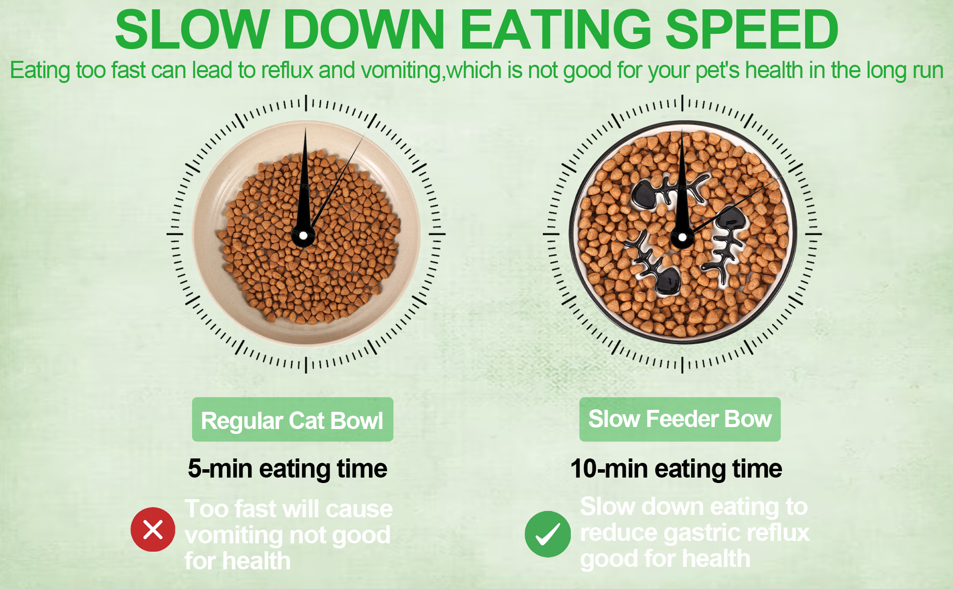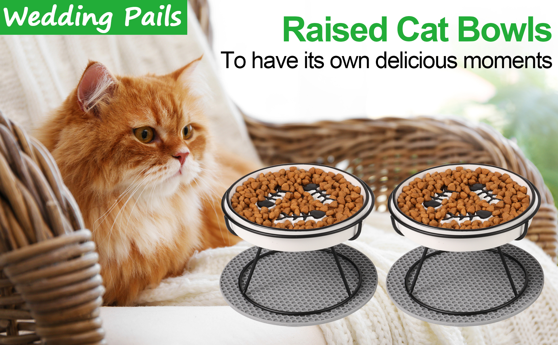 😻😻【Anti-slip & Anti-messy】 The cat food bowls are equipped with 2 non-slip mat that makes the cat bowl well fixed on the ground. You don't have to worry about strong dogs and cats nudging bowls around the floor to keep your floor clean.
