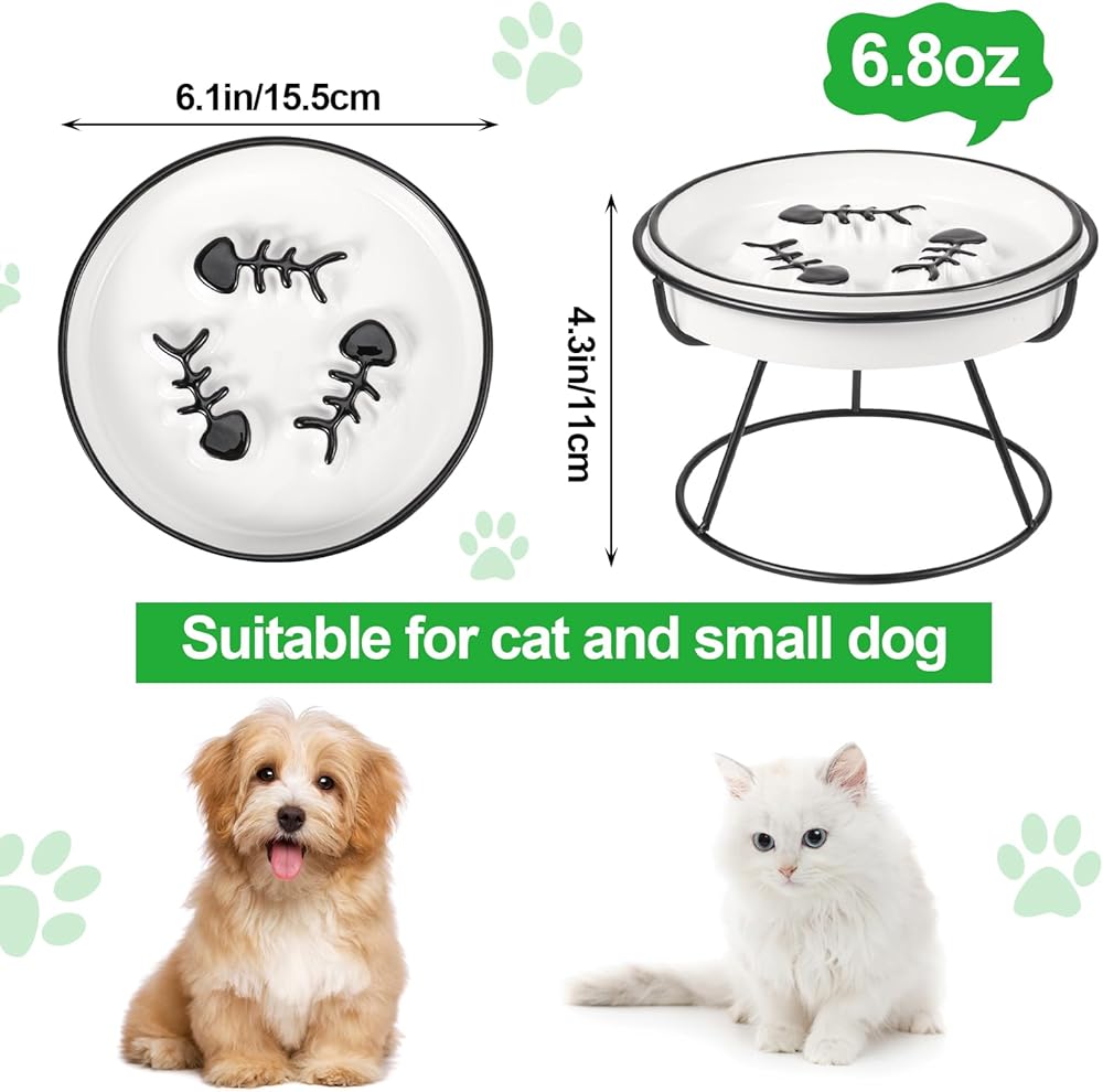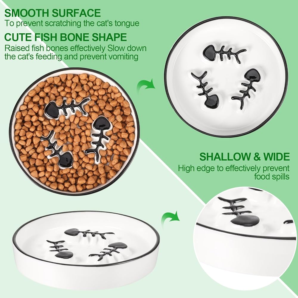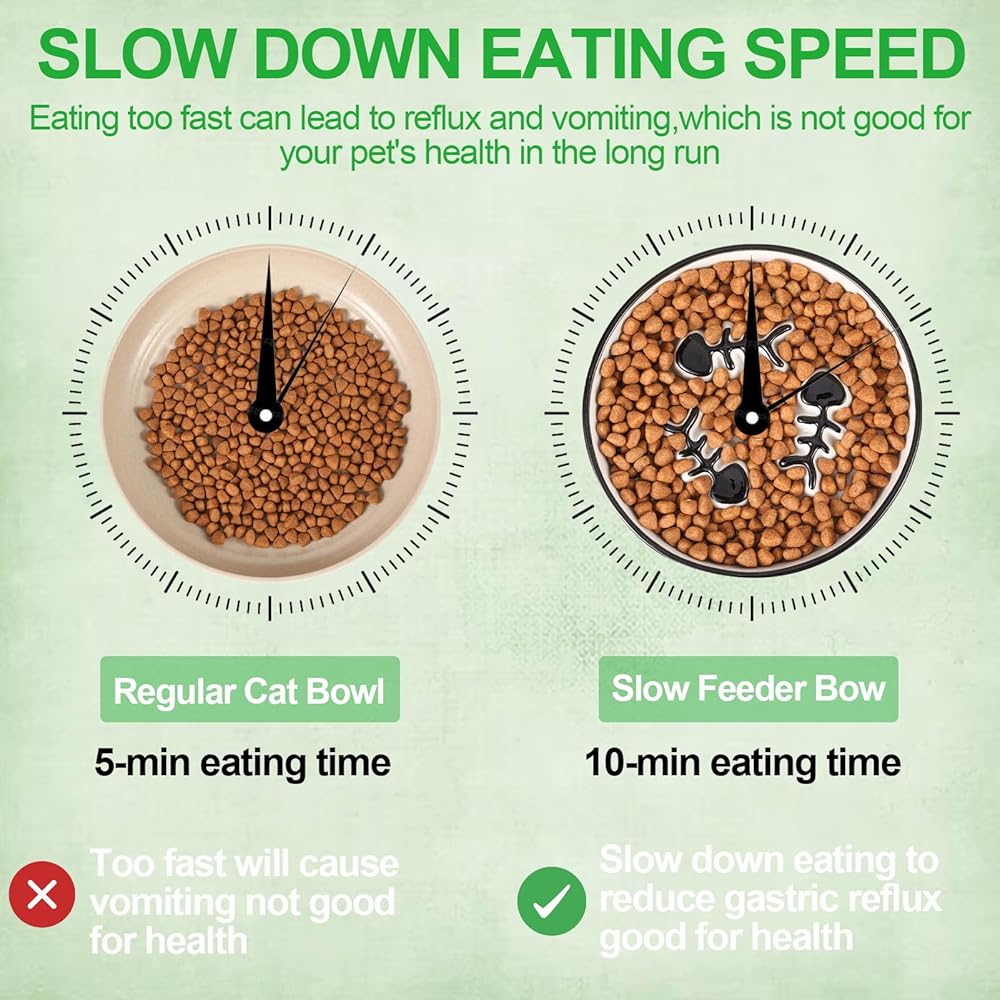 😻😻【Slow Down Eating Speed】 The middle of the cat bowl is designed with raised fish bones, which can effectively slow down the cat's eating speed and prevent vomiting and obesity, promoting digestion. Elevated design make cat eat in a comfortable position, reduce the burden on the cat's cervical spine and protect the cat's cervical spine.