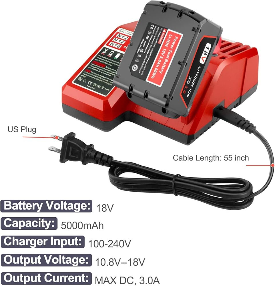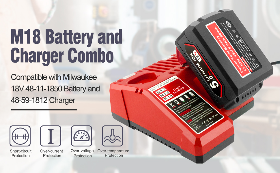 【Product Feature】Battery fuel gauge displays remaining run-time. No memory effect, Charging at any time will have no effect on the battery. Safeguard features against incorrect voltage, short circuit, internal overheating. The charger communicates with the battery pack to ensure a full charge and battery protection.