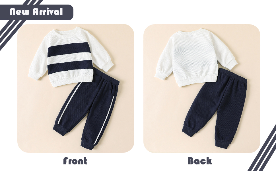 【DESIGN】Baby boy outfits infant boy long sleeve sweatsuit, color contrast stitching design make your little boy attractive in the crowd. Elastic waist pants with pocket easy for boy to play outside.