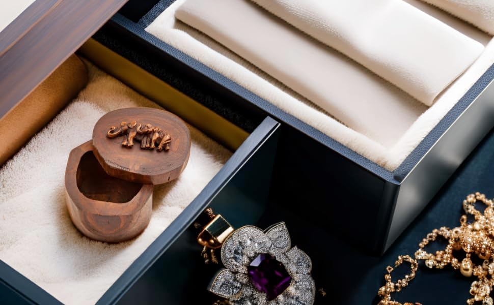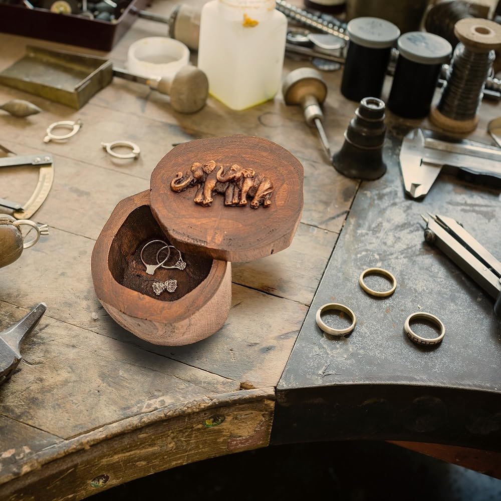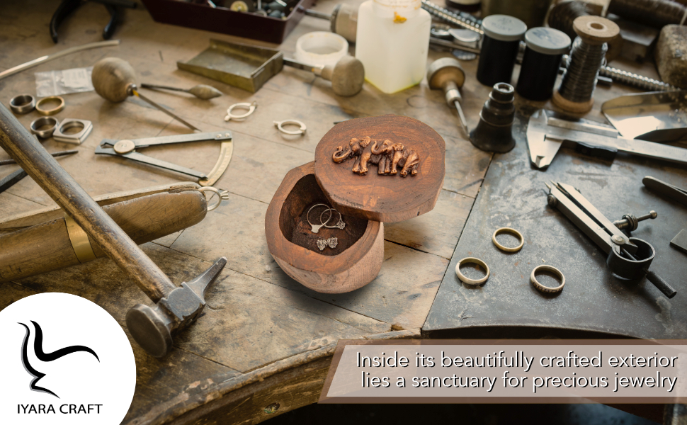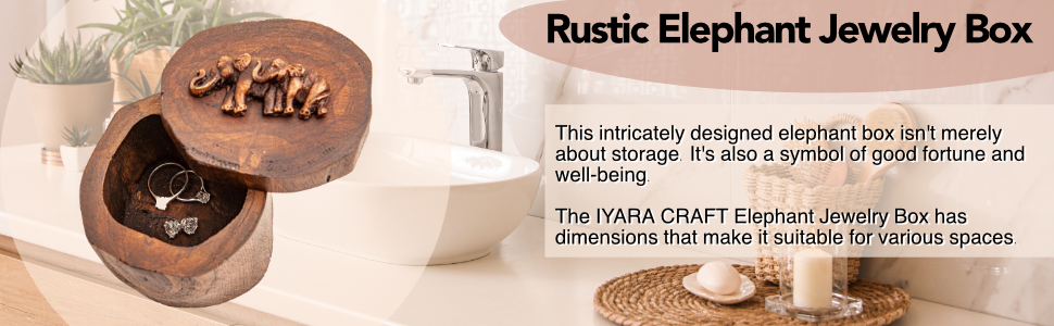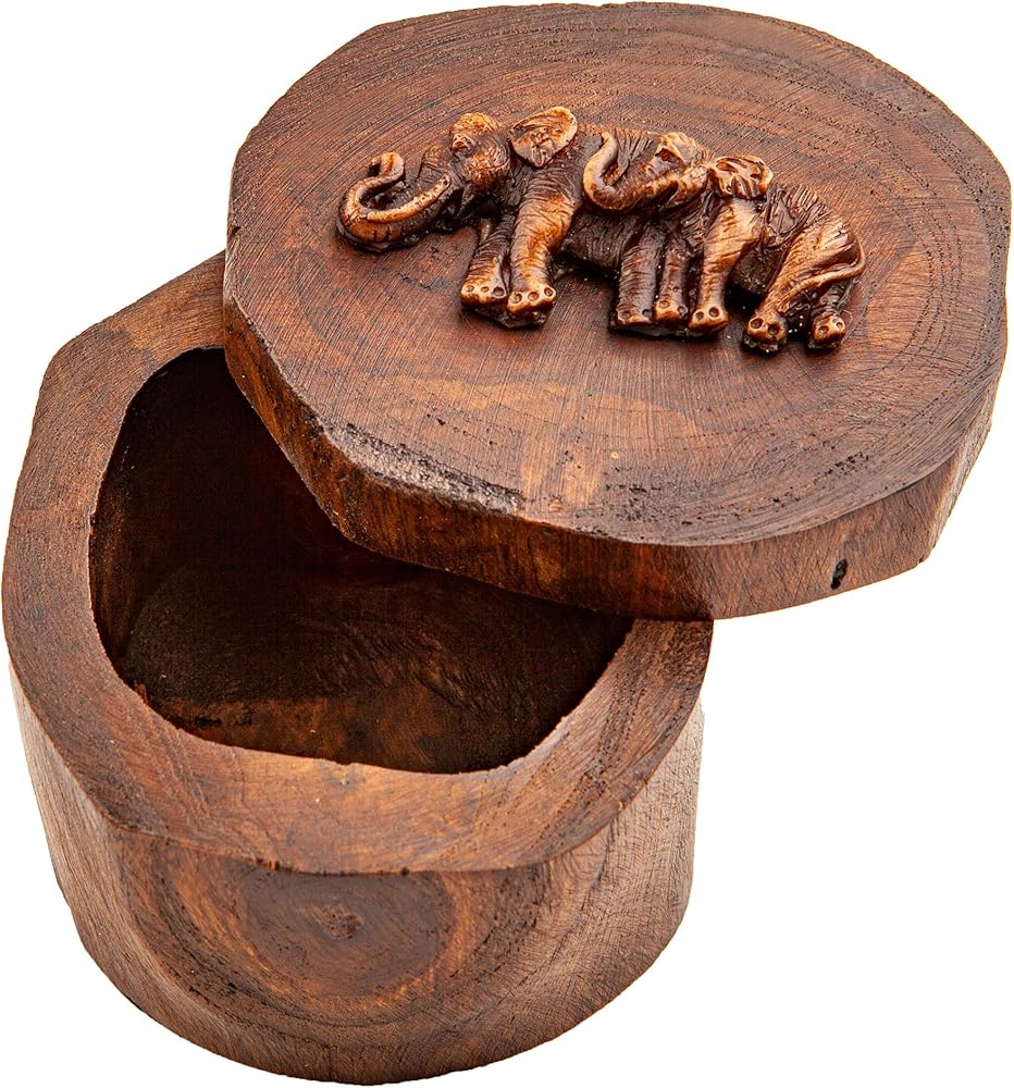 IYARA CRAFT Rustic Elephant Jewelry Box 4x6 - Hand Carved Mother & Father Elephant Family in Genuine Teak Wood. Traditional Antique Look, Ideal for Women, Gift, Srorage, Presentation
