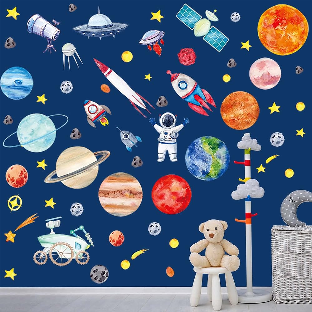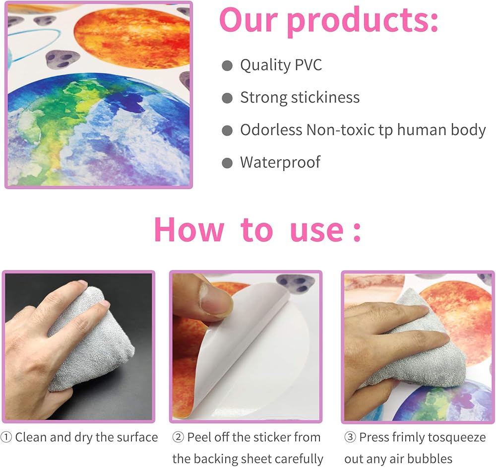 • ✦【أفضل أفكار هدايا للأطفال】: ديكور مثالي لغرفة النوم للأولاد والبنات. ملصقات الفضاء الخارجي هذه مثالية لتزيين غرفة نوم الحضانة! كما أنها رائعة في الفصول الدراسية. غرفة اللعب، الباب، غرفة المعيشة، ديكور غرفة بطابع الفضاء.