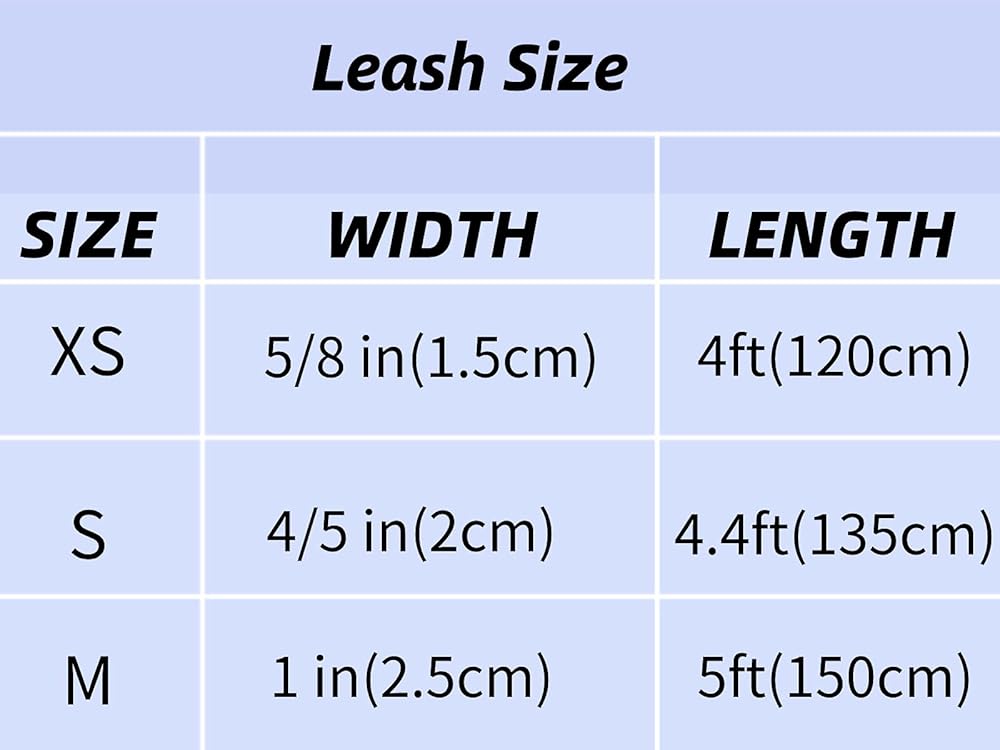 • PERFECT SIZE - XS Leash (Width : 5/8" Length : 4ft), S Leash(Width : 4/5" Length : 4.4ft), M Leash(Width : 1"Length : 5ft), L and XL collars can also use M size leash.