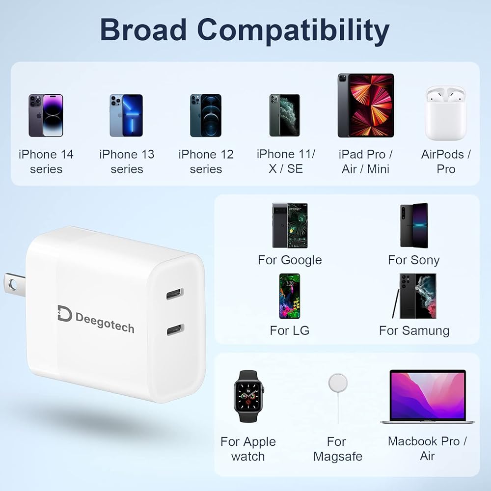 [Universal Compatibility] Deegotech 35W USB C wall charger passed fast charge certification - PD3.0, PPS certification, QC2.0/3.0/3.0+, AFC, USB BC1.2 DCP. Fast charge for most device (USB C charging cable not included)