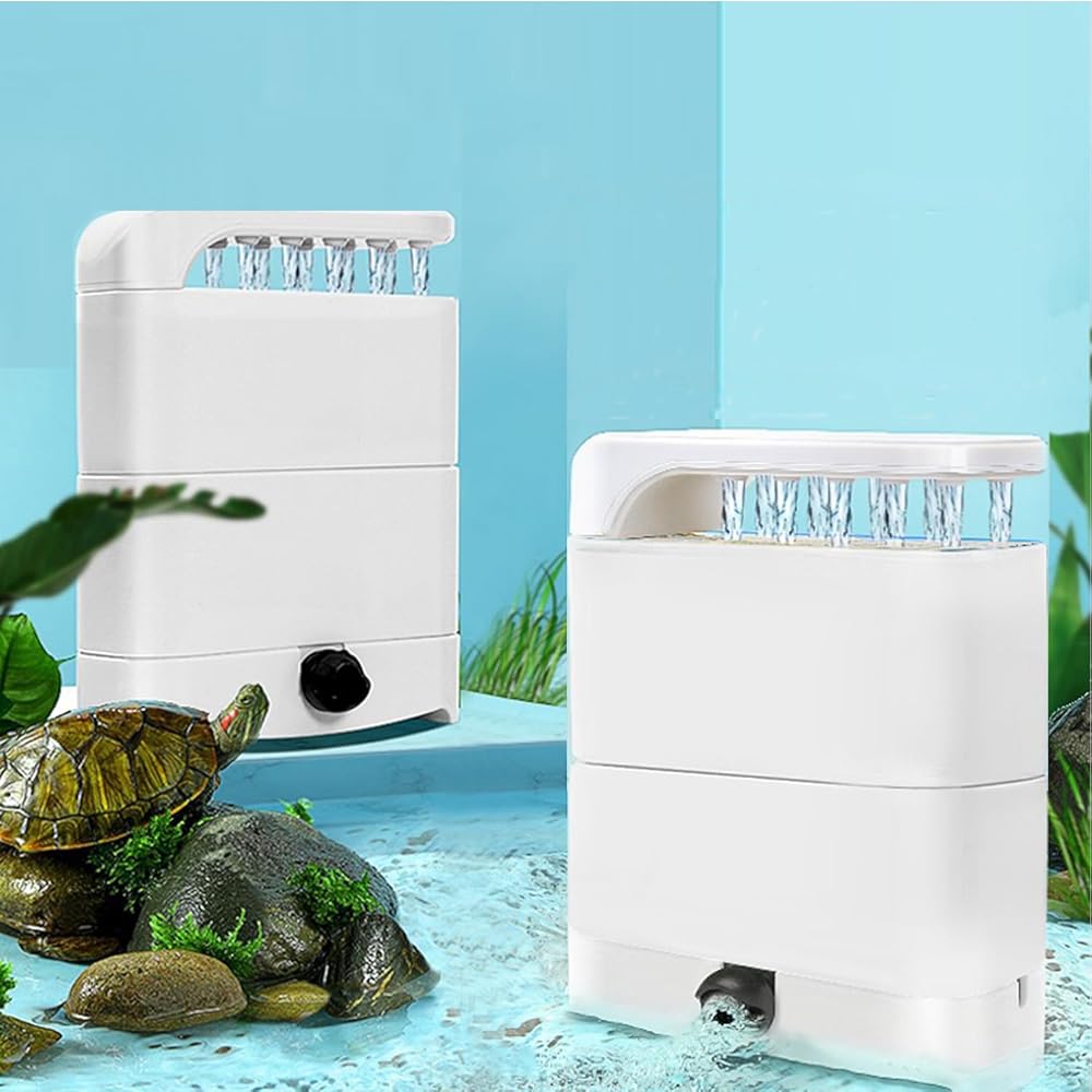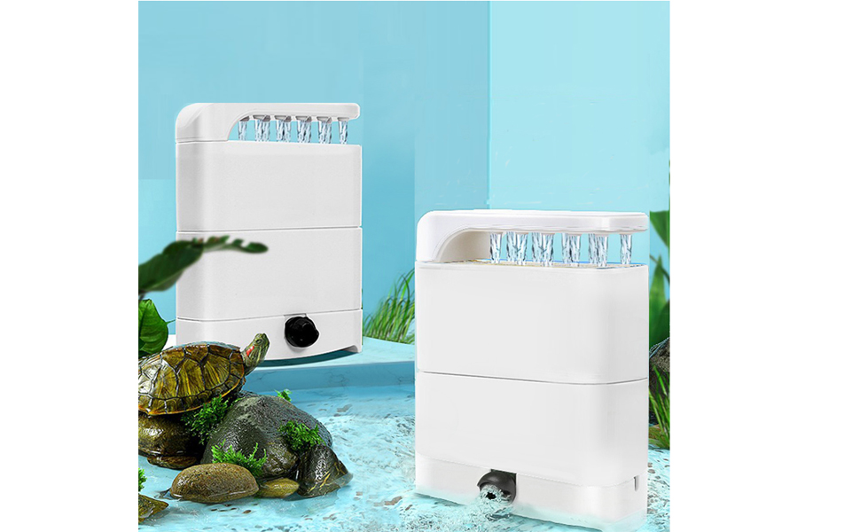 【High Efficiency Filtration Turtle Filter】:This turtle filter have 2 stage chambers and is equipped with two sponge filters and bio ceramic balls, through these filters, it could filter debris and reduce ammonia and nitrates level to improve the clarity of the water. Also you could stack other filter medias to customize your own Two-stage filtration system.