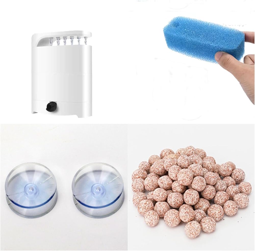 【Easy Installation】:Our filter have the everything you need to install, you just need to loaded rinsed one sponge and bio balls to filter, than use the suction cups to attached the filter to wall, at last, plug in and get start.(PS: We suggest you to clean the aquarium filter in every 2 weeks to keep standard filtration efficiency.)