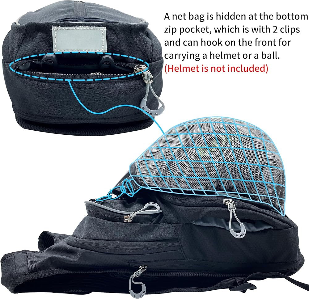 【Safe and Visible Design】Our hiking backpack features a whistle buckle and reflective strips for added safety while cycling at night. It also comes with a net pocket for carrying a bike helmet (Note: Helmet is not included). Its bright and reflective design ensures visibility during low-light conditions.