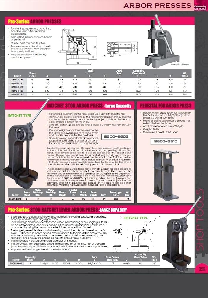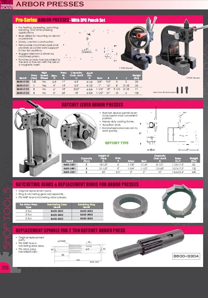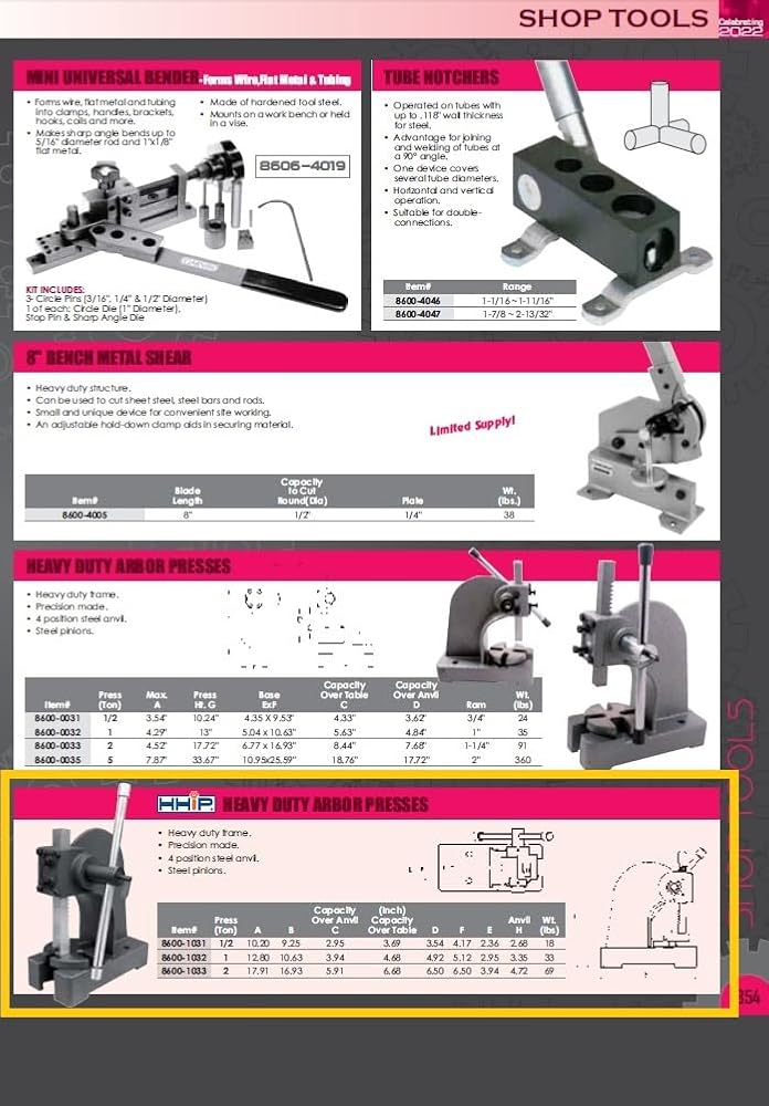 HHIP 1/2 Ton Heavy duty arbor press with heavy duty frame. Precision made. 4 position steel anvil. Steel pinions.