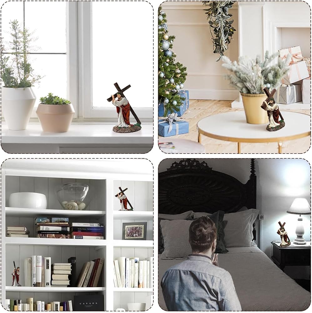 【Jesus Carrying the Cross】 Dear Lord died for us, so we can have eternal life. He sacrificed himself for our sin, so we can be saved! This Jesus carrying the cross figurine is a memorial and an expression of our thanks, respect and endless love for Him.
