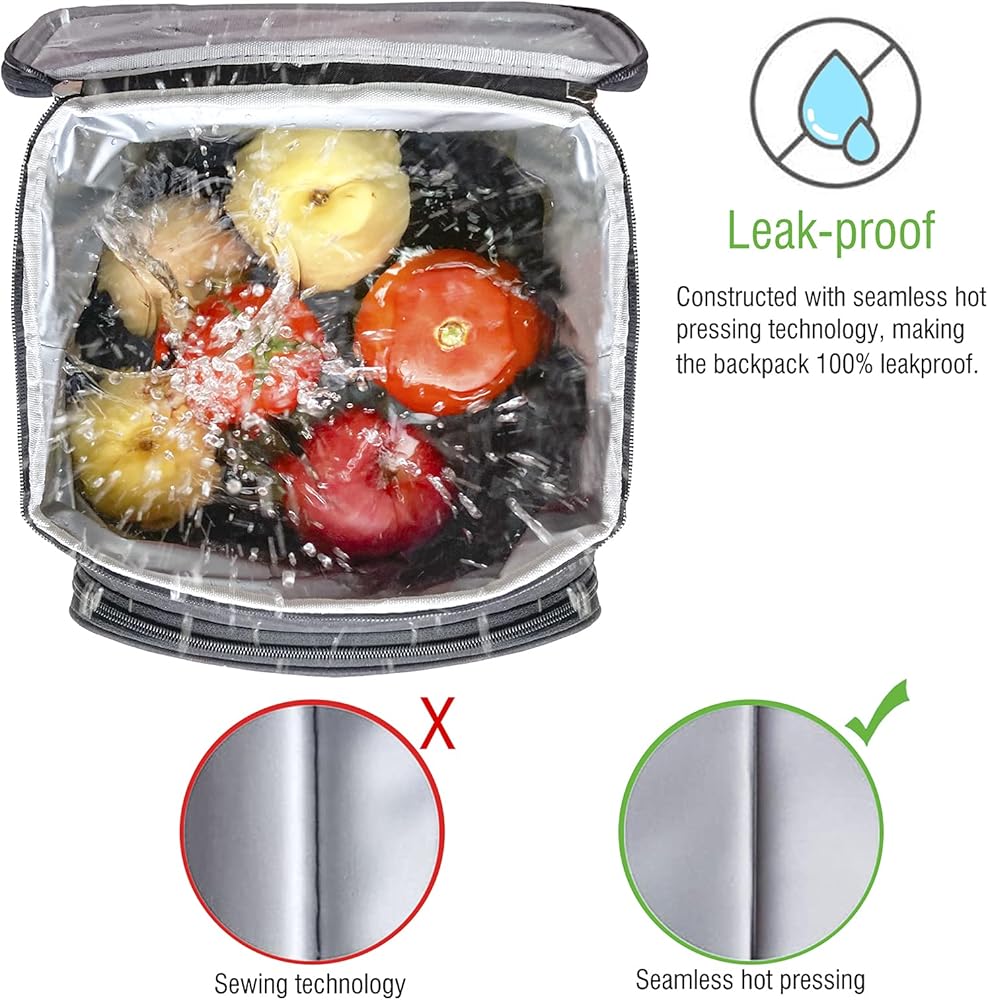 Insulated Cooler Backpack: Insulation material and leak-proof liner inside of the insulated backpacks work together to make sure anti-leaking and keep food hot/ cold for 10 hours. The interior lining is made of excellent upgrade material and easy to clean.