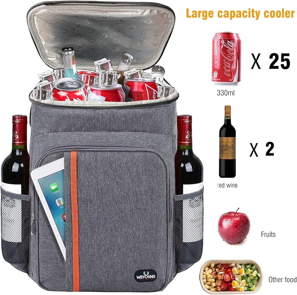 Large Capacity Coolers: 11.4" x 7.4" x 16.5" / 29cm x 19cm x 42cm (L x W x H), Weight: 1.2 pounds / 550g, can hold up to 25 cans(330ml), own enough space for all your necessities.