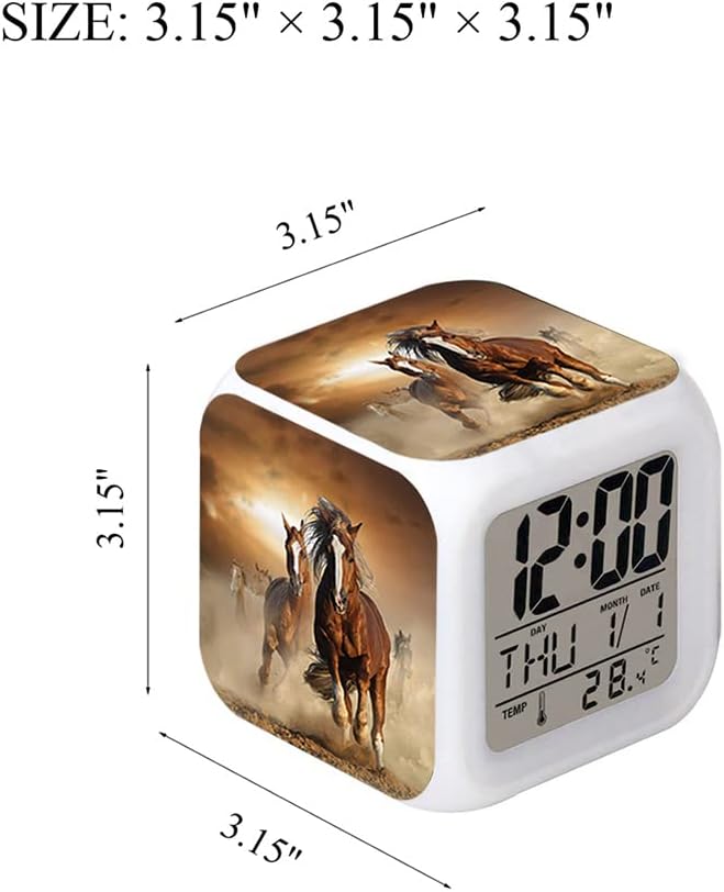 Feature: Snooze, Night Light, Glowing Led Lights (Glowing LED light with 7 different color changing.)