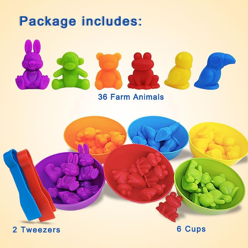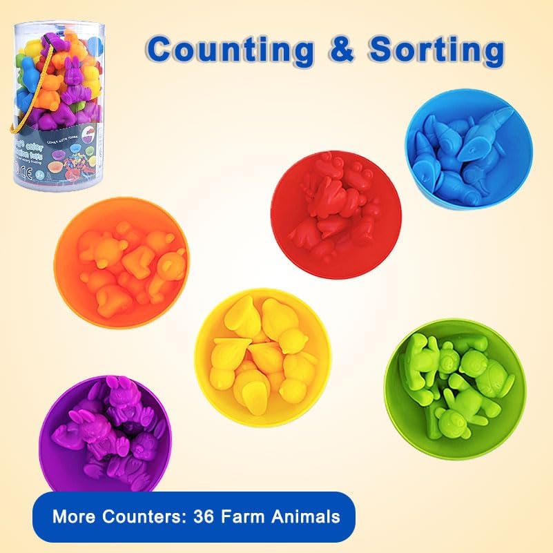 Counting Color Sorting Farm Animal Toys for Toddlers Matching Games, Sensory Toys for Toddlers 3+, Autistic Children Learning Tools, Educational Preschool Learning Games Activities for Educational