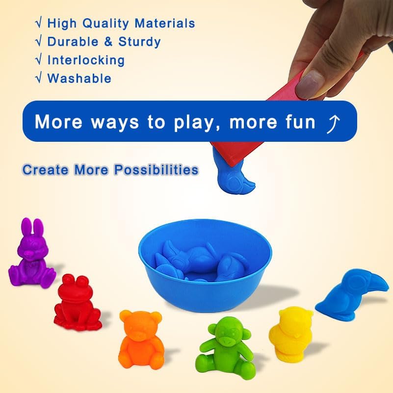 🐙Montessori Toys for 3+ Year Old- Wonderful assistant for kindergarten and home teaching! The preschool learning toys for 3 year old are great for daycare supplies and kindergarten resource. Great STEM educational math manipulatives for preschoolers materials toy designed to inspire and stimulate a child's mind. Counting ocean animal and bears make children love them, the animal counters are also great as sensory autism toys for toddlers.