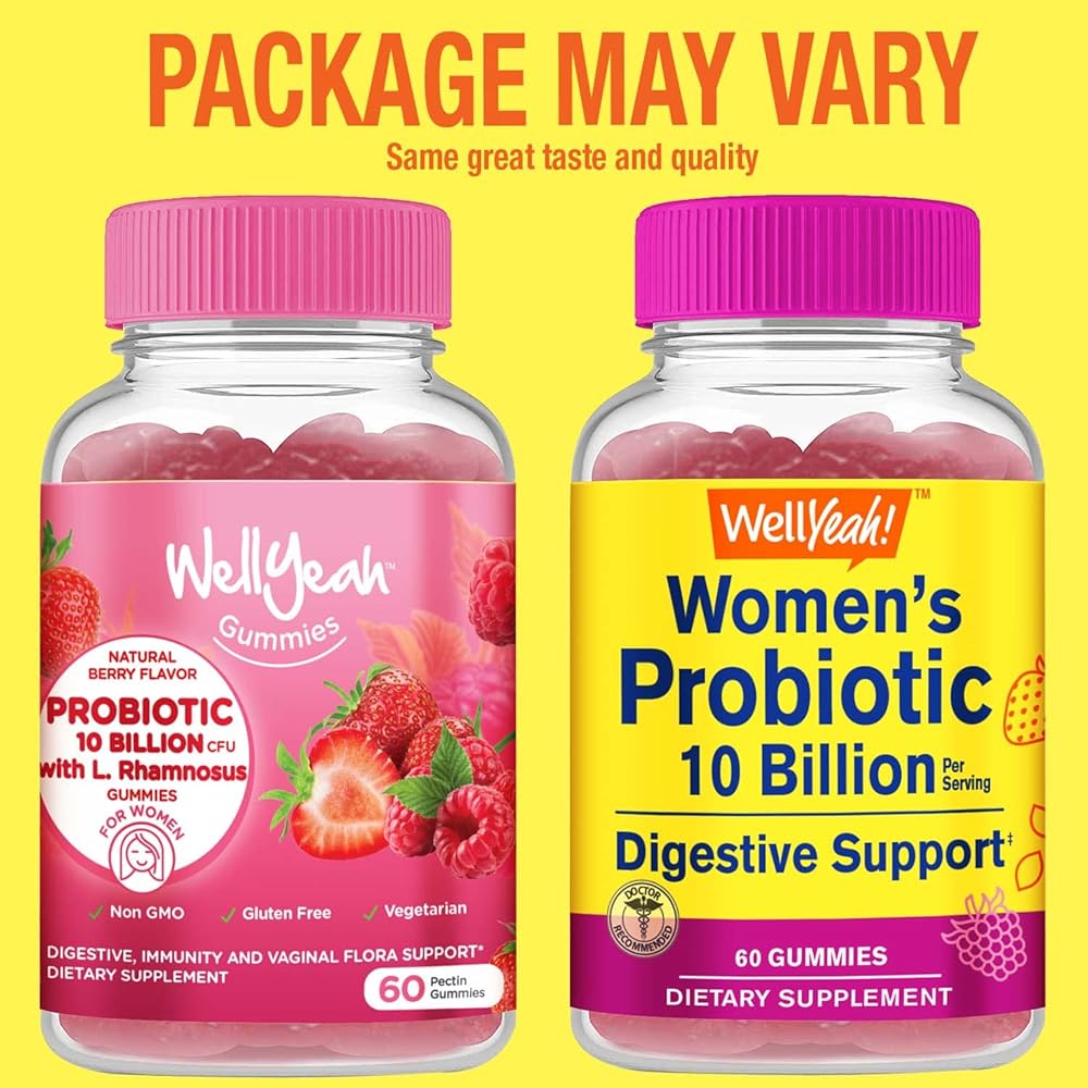 WellYeah Probiotics for Women Gummies (2 Pack) - 10 Billion CFU - for Digestive Support, Gut Health, and Feminine Health Support -Berry Flavor - Vegan, Delayed Release Womens Probiotic - 60 Gummies