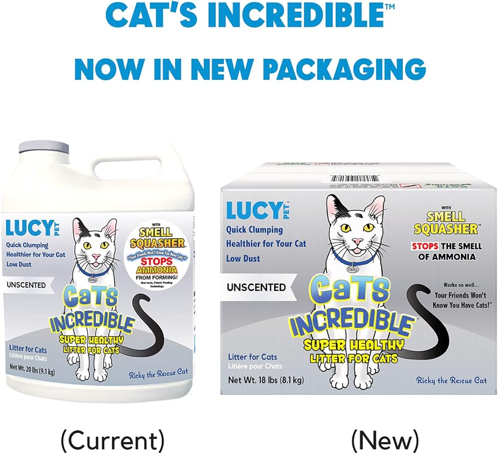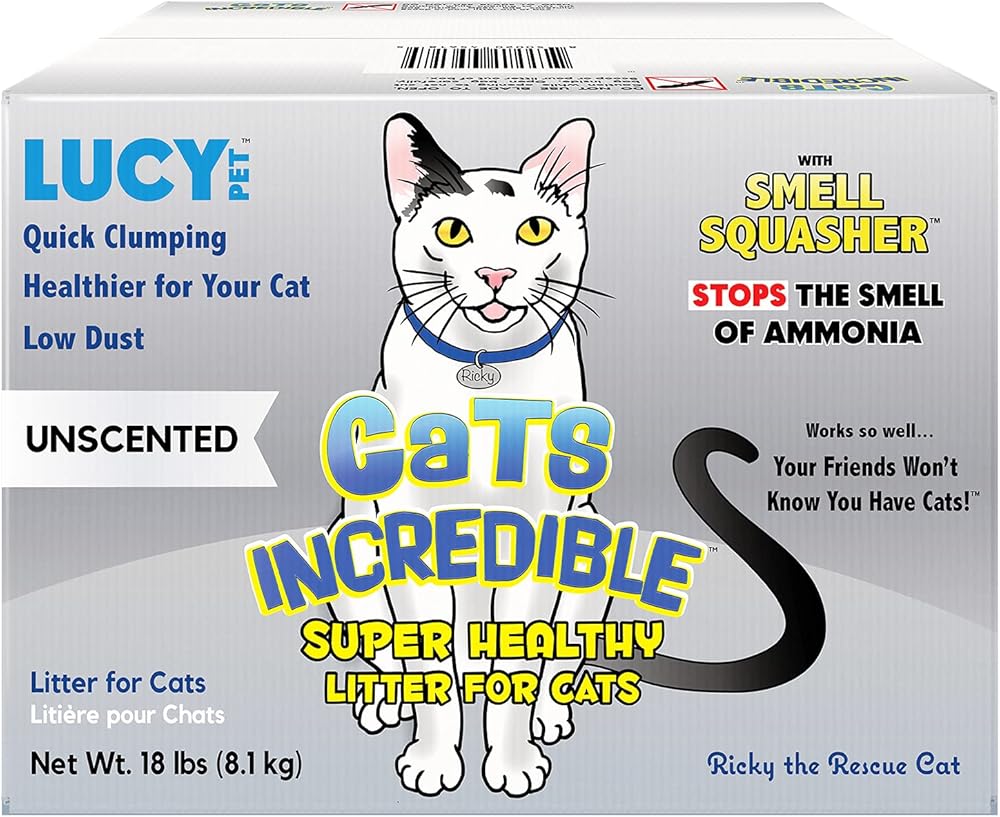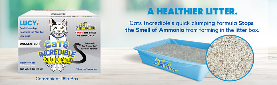 Cats Incredible Clumping Unscented Cat Litter with patented Smell Squasher prevents ammonia from forming in the litter box. Low dust, low tracking, and now in environmentally-friendly recyclable packaging.