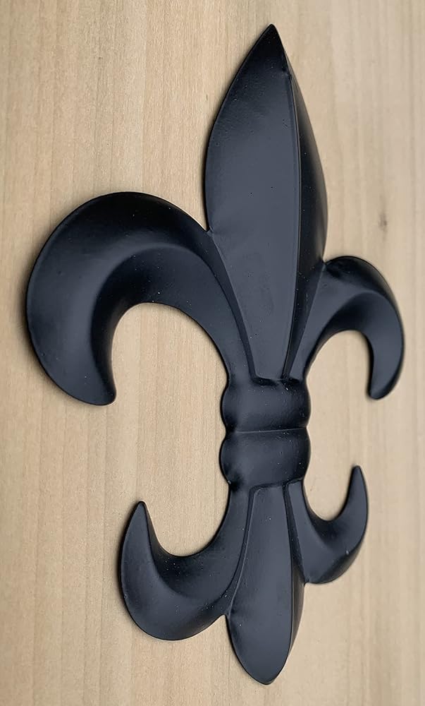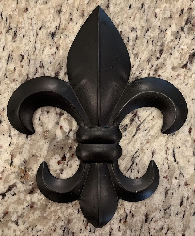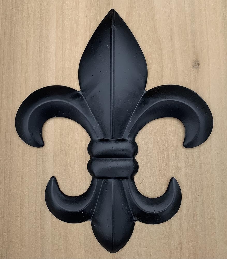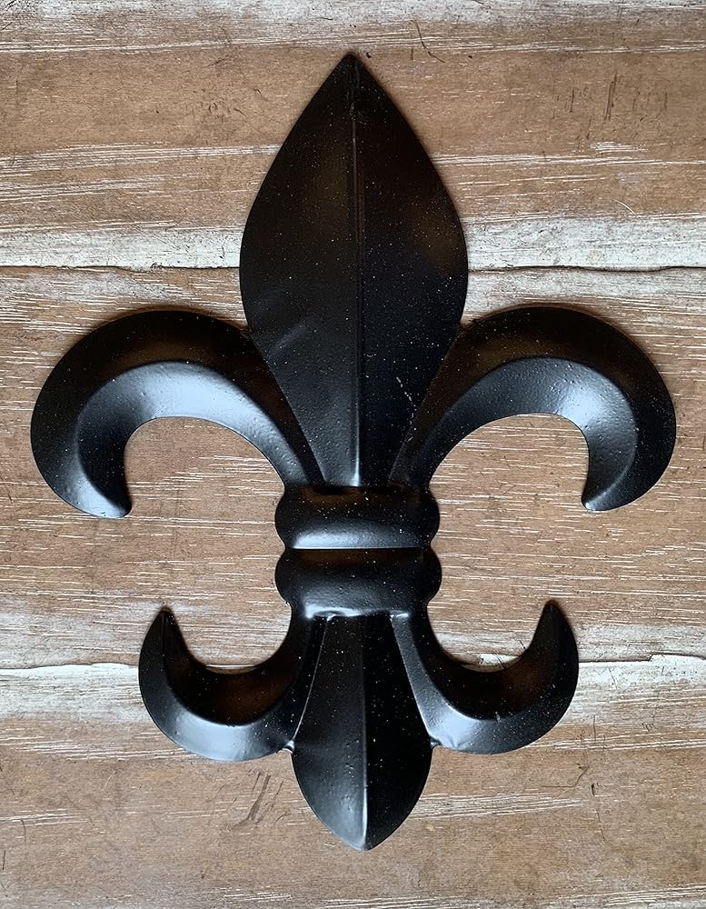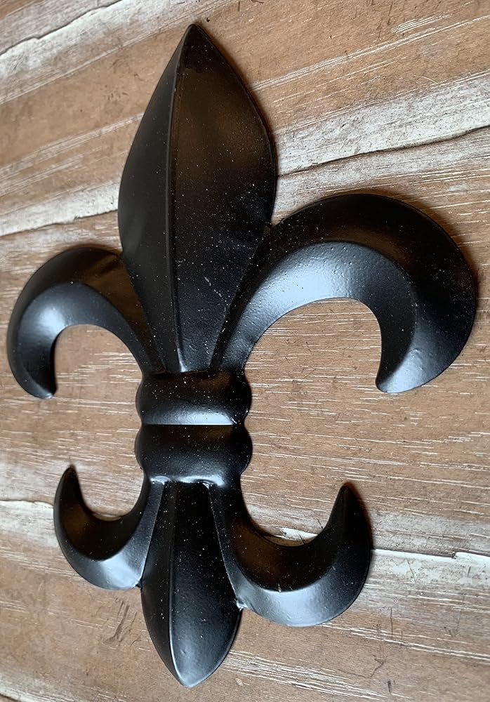 Now enjoy our medium 8" version of the popular fleur de lis wall plaques in new black and weathered bronze finishes. Durable stamped metal Fleur-De-Lis! Great for decorating any wall in the house. All metal construction with rustic painted finishes as shown. Hook on back for hanging. Measures 10" tall x 8" wide