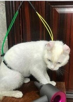 Grooming tool keeps pet standing in comfort and helps control overly or excitable pets from excessive moving