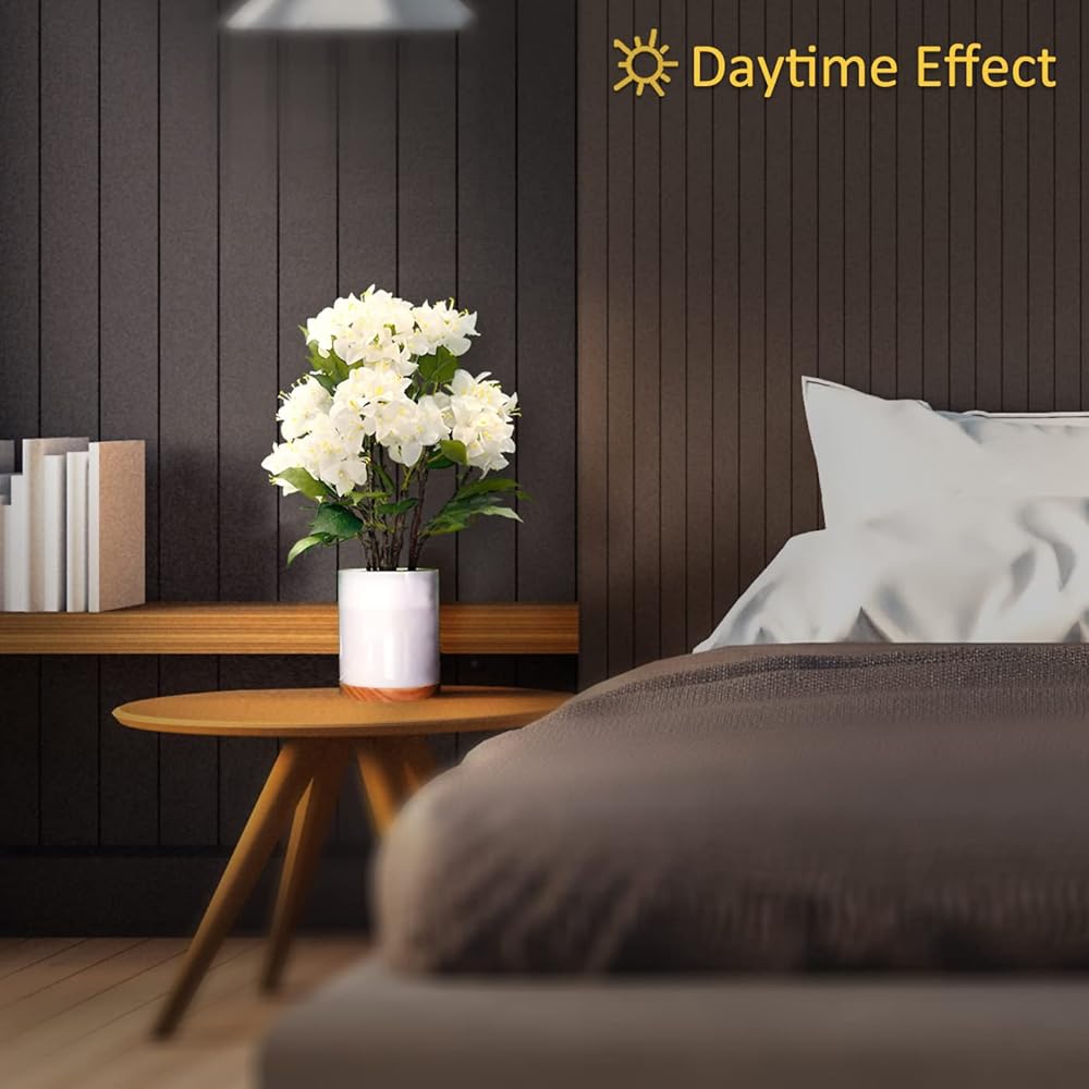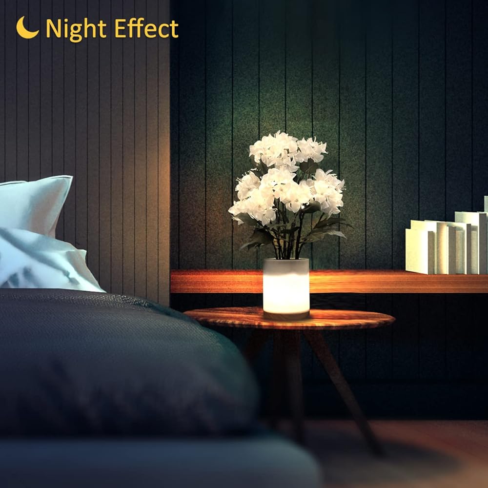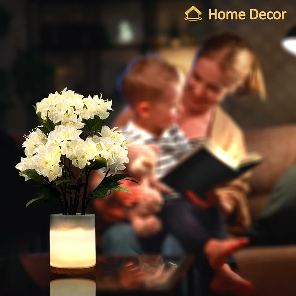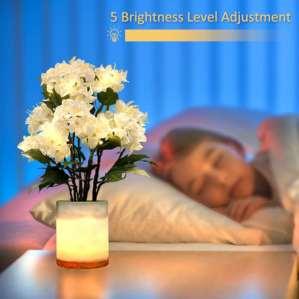 【Perfect Night Light】Both the pot and the flowers are illuminated with energy efficient soft white LEDs. Five levels of brightness from gentle nightlight to moderately bright.Made with high-quality artificial flowers, this lamp is a lasting decoration that will stay in bloom all year round without any upkeep.