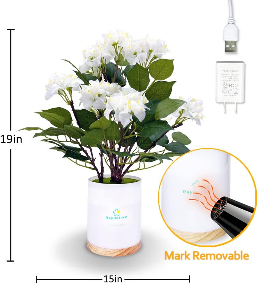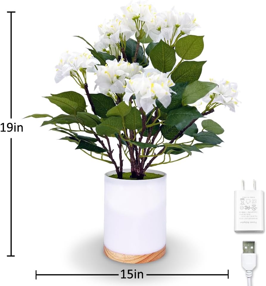 19In Artificial Flower Lamp, Light Up Artificial Tree Arrangements with AC Power in USB Charger – Unique Mood Light for Living Room, Bedroom and Bedside Table,Indoor Home Decor(White)