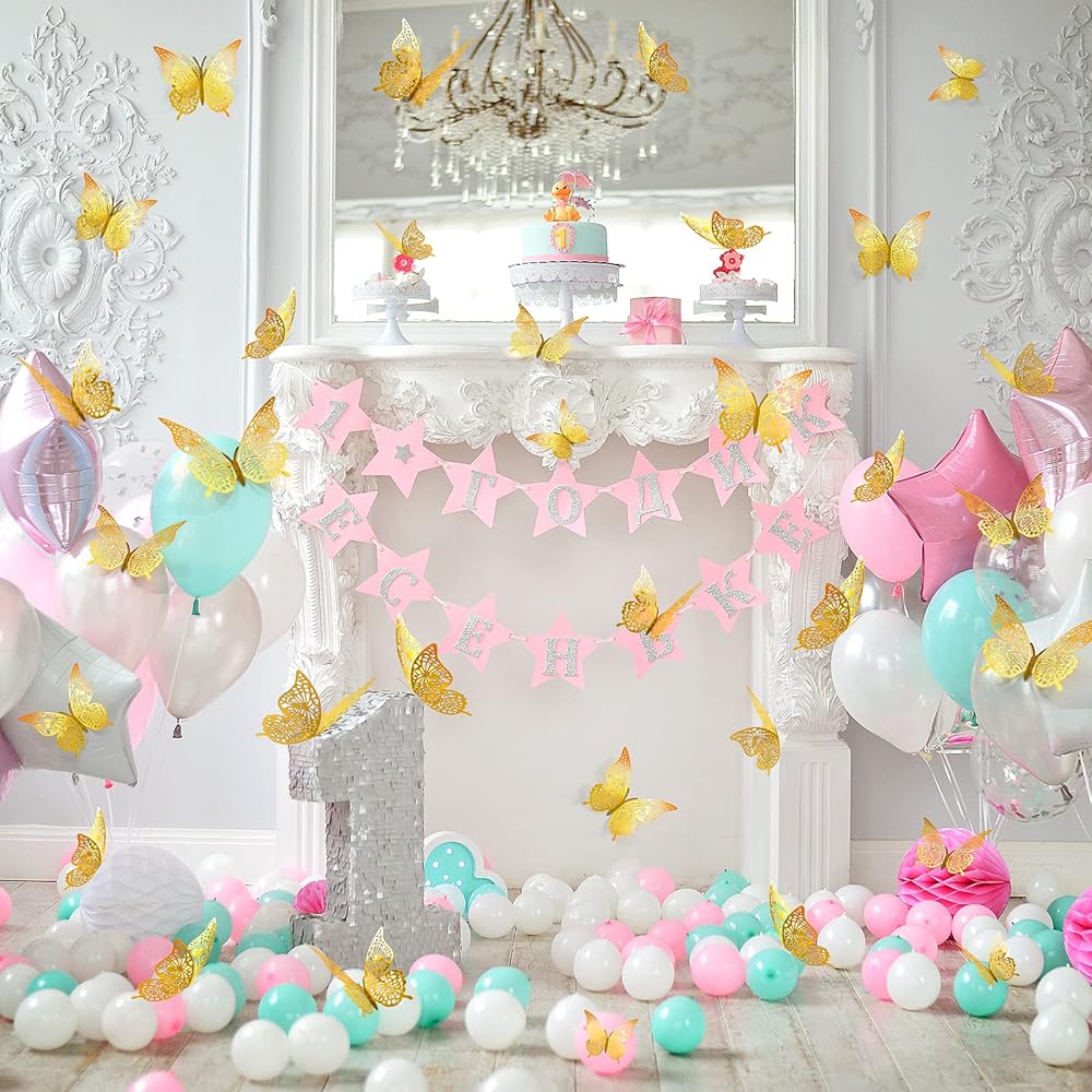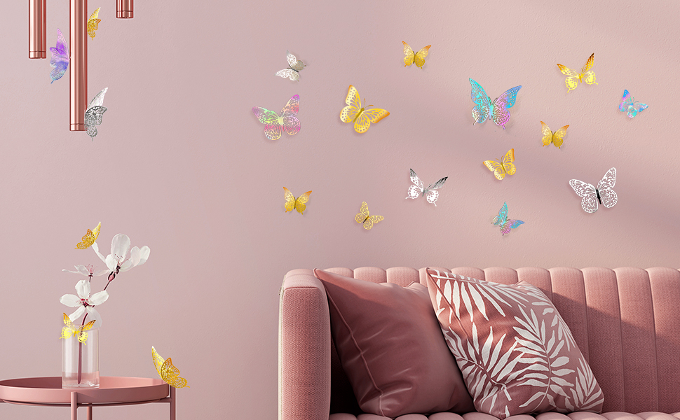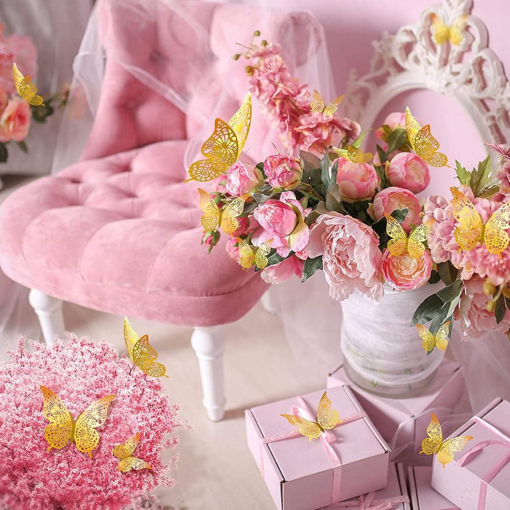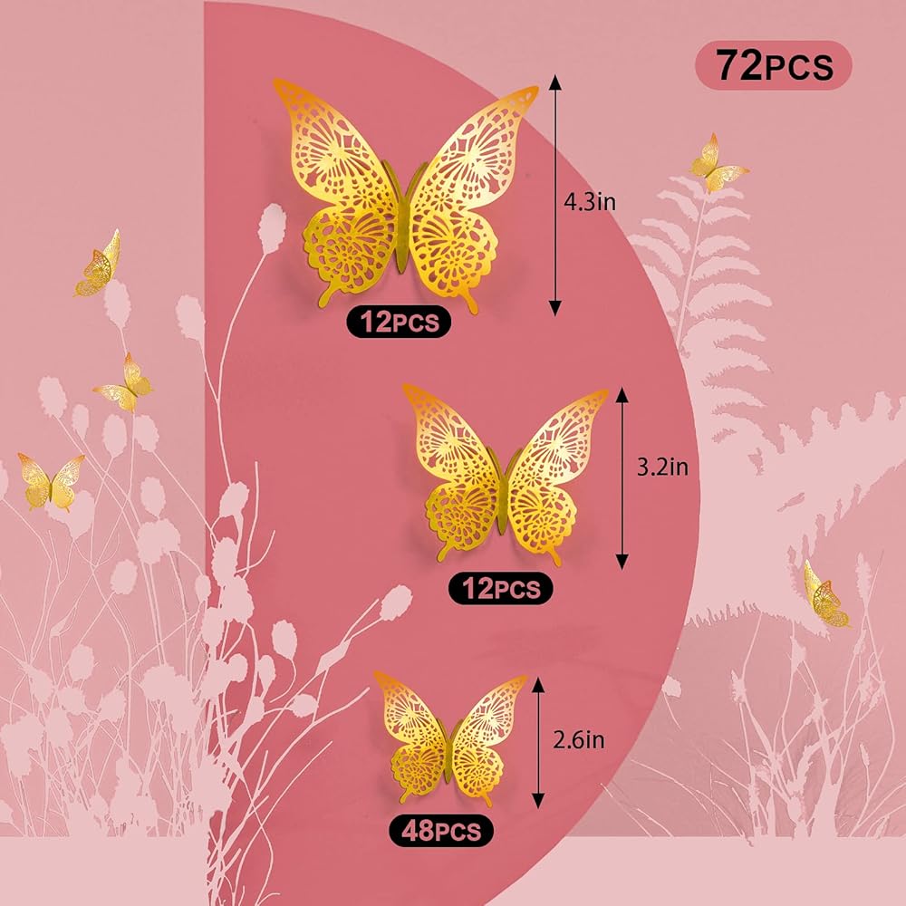 72 Pcs Butterfly Wall Decor, 3D Butterfly Removable Mural Stickers Wall Stickers Decal for Home and Room Decoration (Golden)