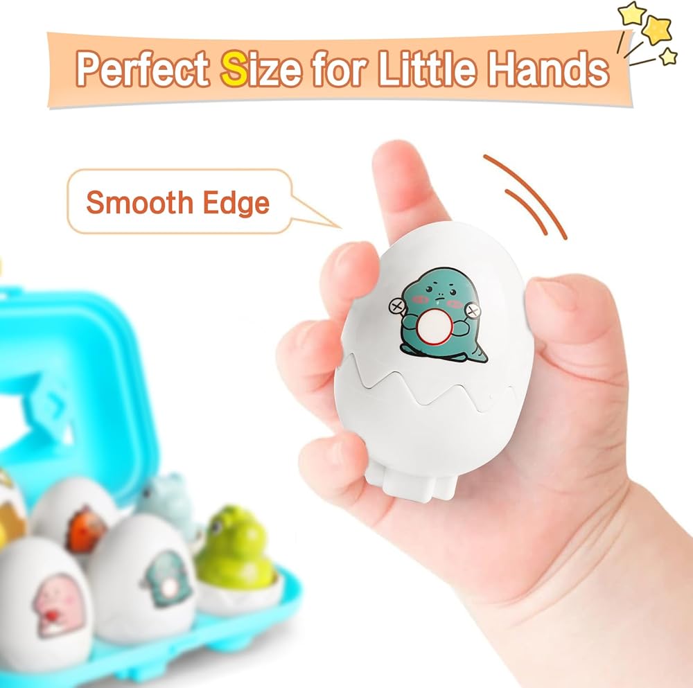🐣 TODDLER SORTING TOY - 12 realistic eggs in a carton will help preschoolers learn to count, sort, and match! This is a great toy for toddlers to help with motor skills when younger or help teach colors or numbers as they grow.