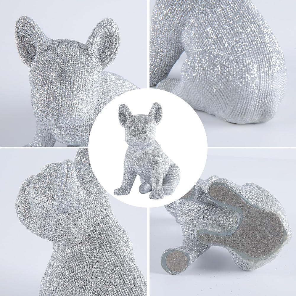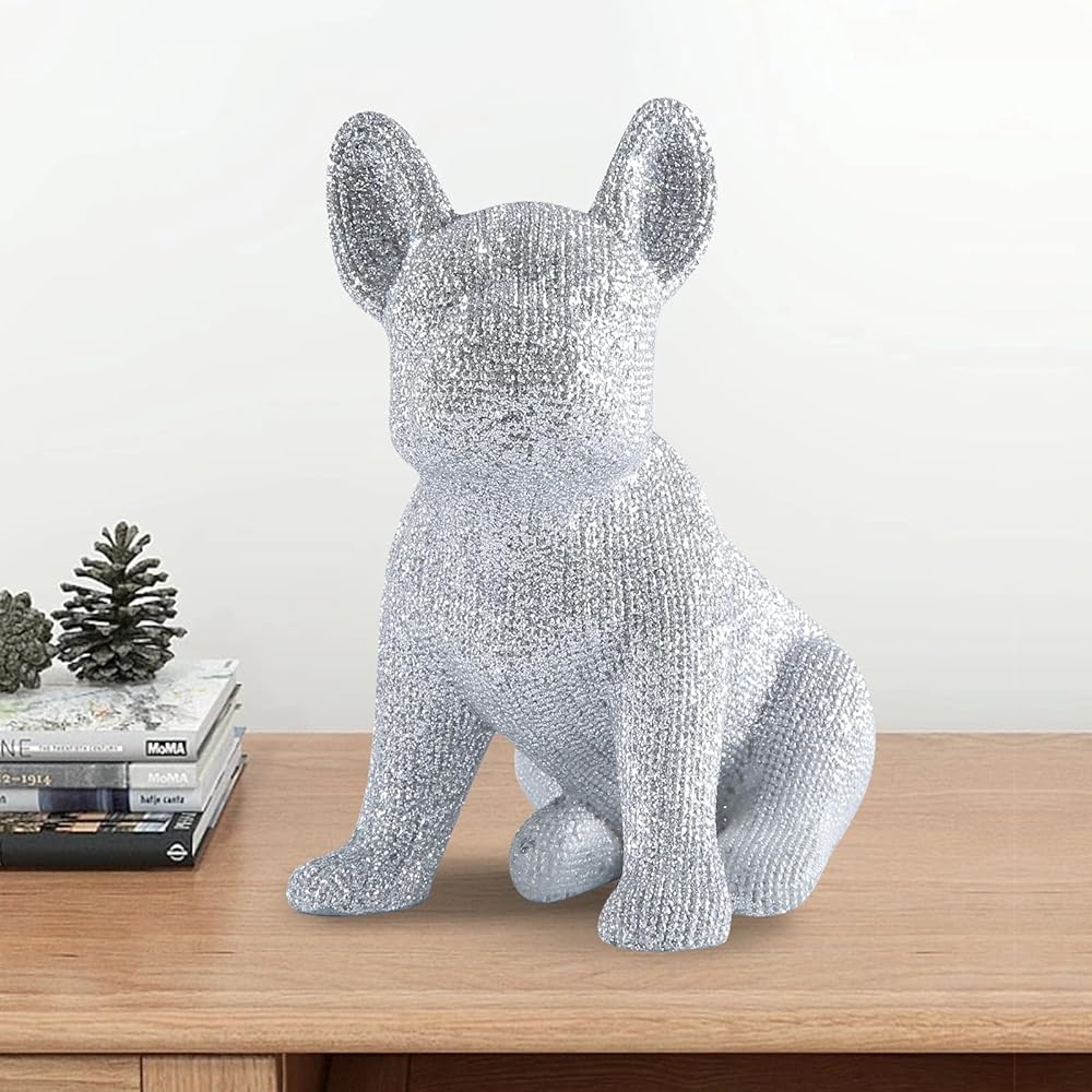 Our Miniature Silver French Bulldog Figurines are a practical and charming addition to any home. Small in size, at 4.33 x 2.9 x 4.69 inches, they fit perfectly on your mantelpiece or TV stand. Made of durable resin with a simple silver finish, they're easy to clean and maintain. These little dogs are great for anyone looking to add a touch of character to their living space without taking up too much room.