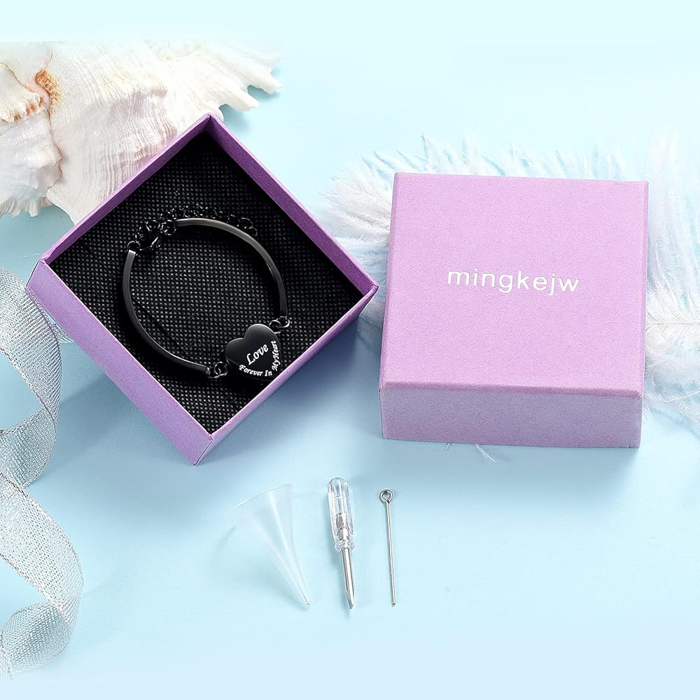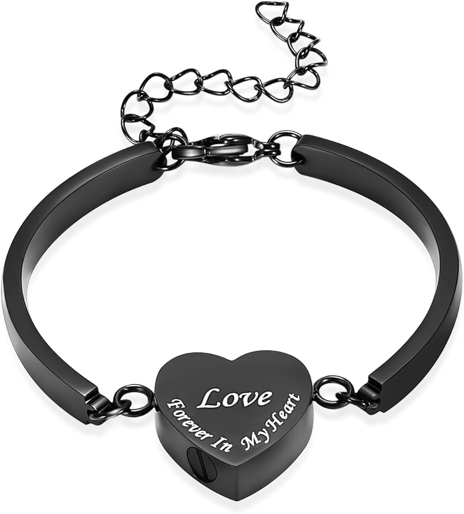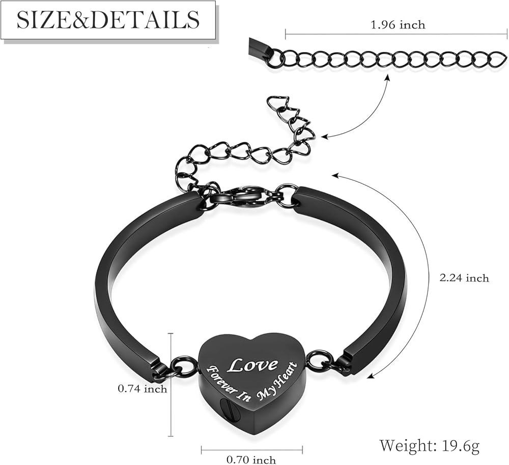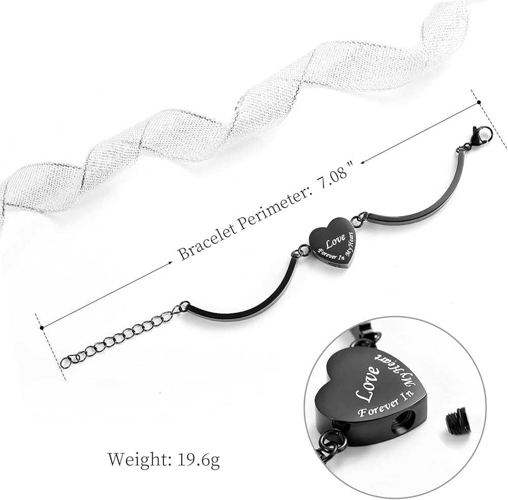 Heart Urn Bracelet for Ashes for Women Men Cremation Jewelry Stainless Steel Memorial Cuff Bangle Cremation Bracelets Ash Holder Keepsake Jewelry for Loved Ones with Fill Tool- Forever in My Heart