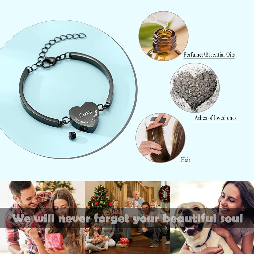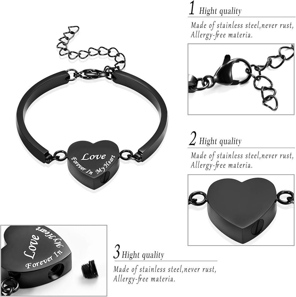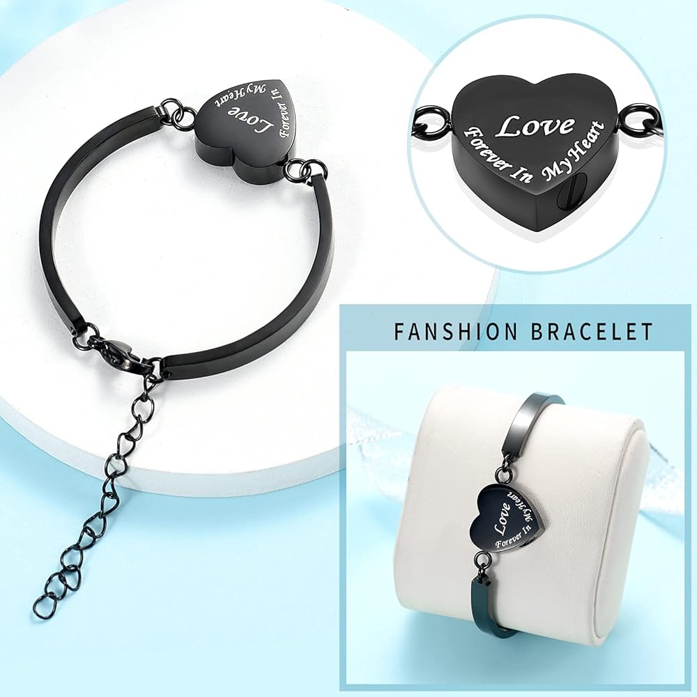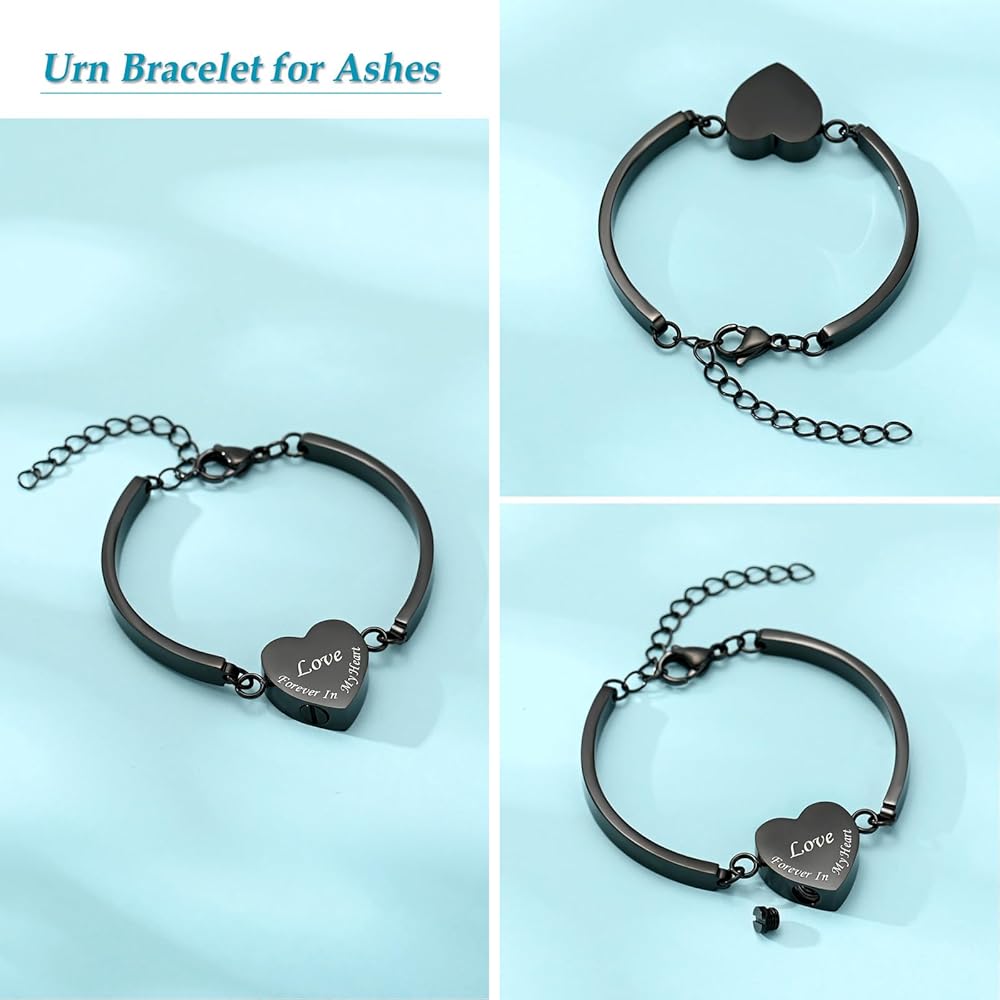 Heart Urn Bracelet for Ashes for Women Men Cremation Jewelry Stainless Steel Memorial Cuff Bangle Cremation Bracelets Ash Holder Keepsake Jewelry for Loved Ones with Fill Tool- Forever in My Heart