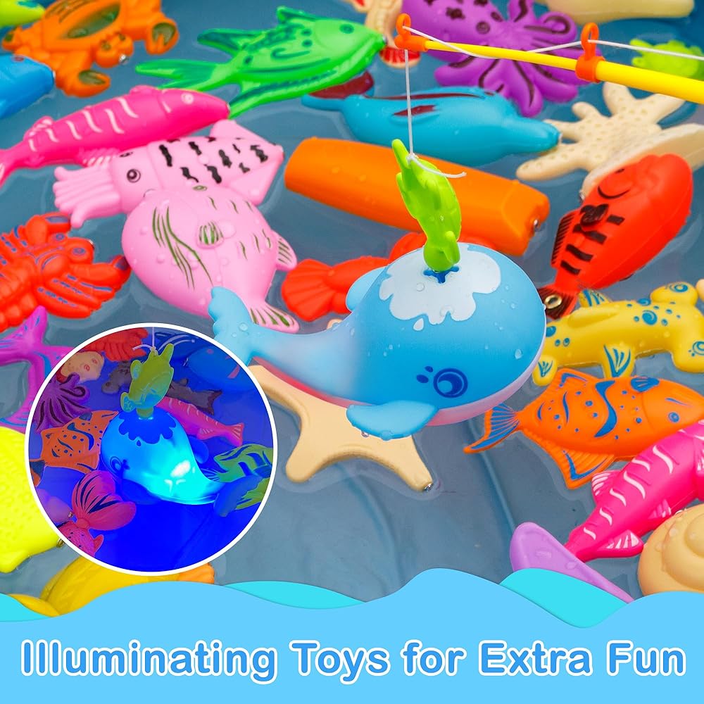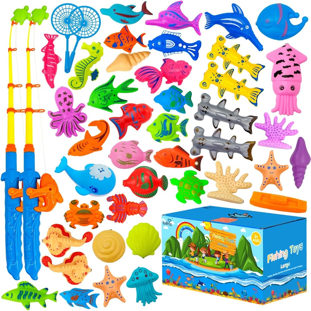 Kiditos 46PCS Magnetic Fishing Bath Toys Game Set,Swimming Fish Toys for Bathtub,Water Table Bathtub Toys for Toddlers Kids Age 3-6, Pool Toys for Pretend Play&Education Teaching&Learning Colors