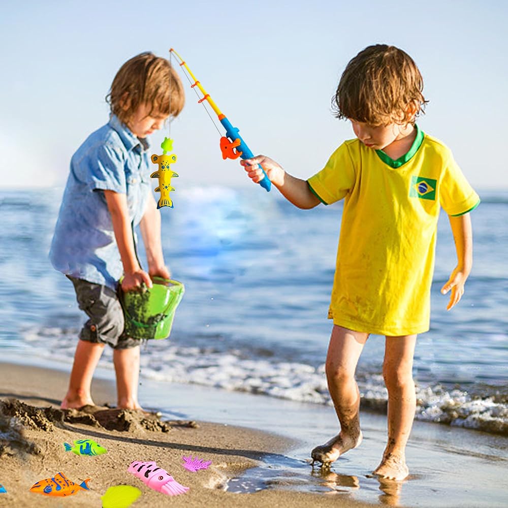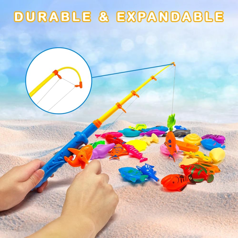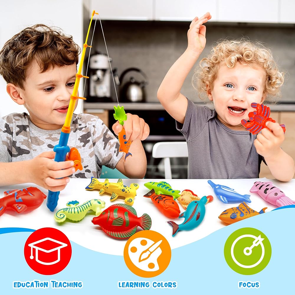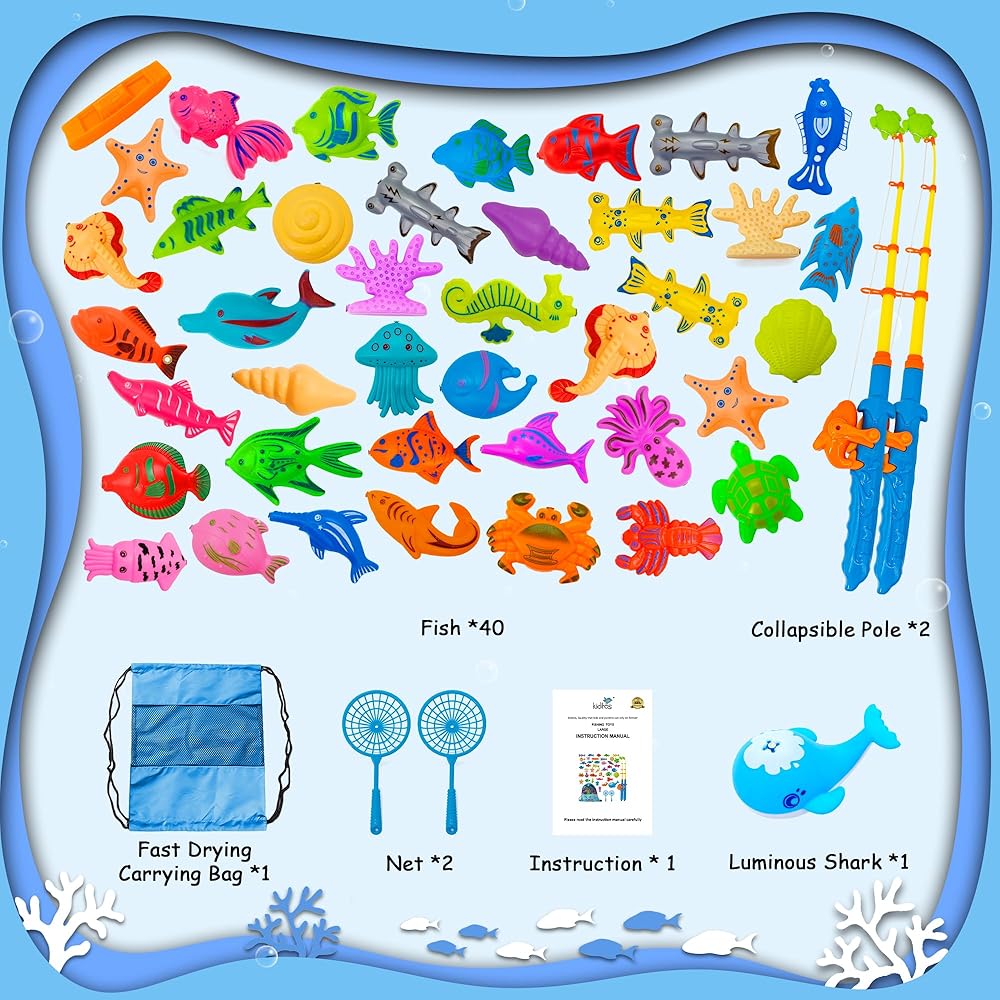 Magnetic Fishing Game - There are 45pcs colorful fishes in the set. Kids can play fishing game with friends, it will keep them busy for a quite while. The fishing tools include 2 fishing rods and 2 nets, it's enough for kids to start a small fishing competition. Parents can also join in this fun game, enjoy happy family time.