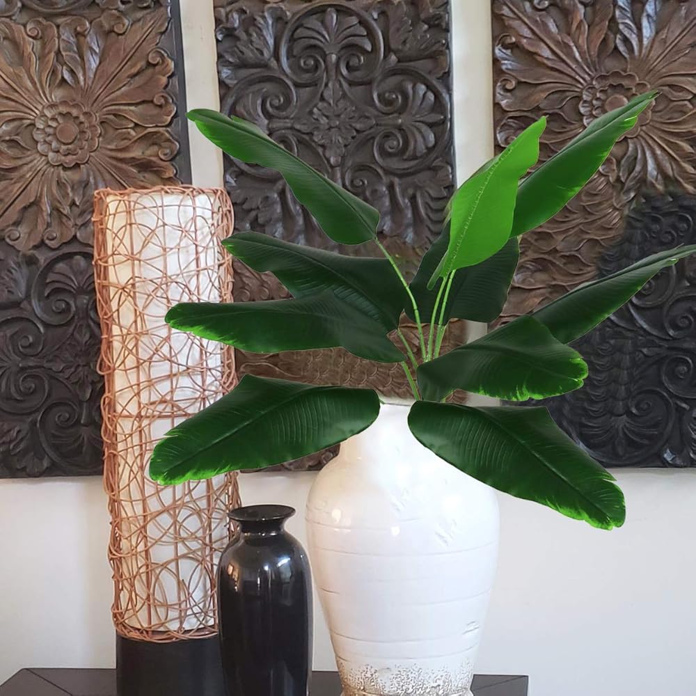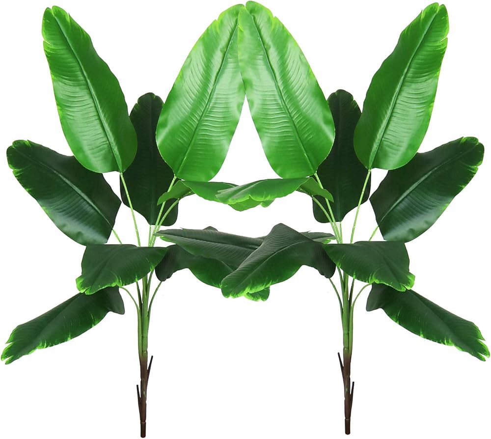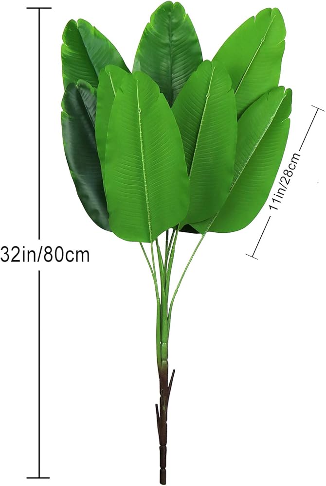 ✿Package: 2pcs. Size: Each tropical stem size: 32" Length, each bunch has 9 flexible stems and bushy leaves.Leaves 11" x 5"(LxW).Adding a great pop of greenery to your space