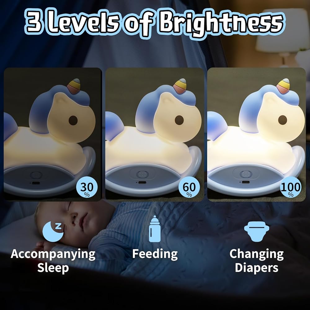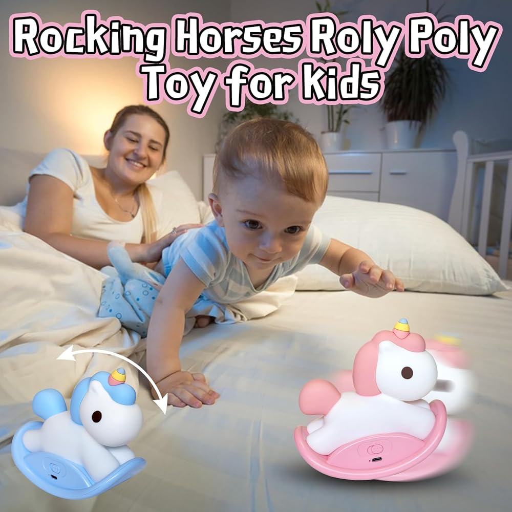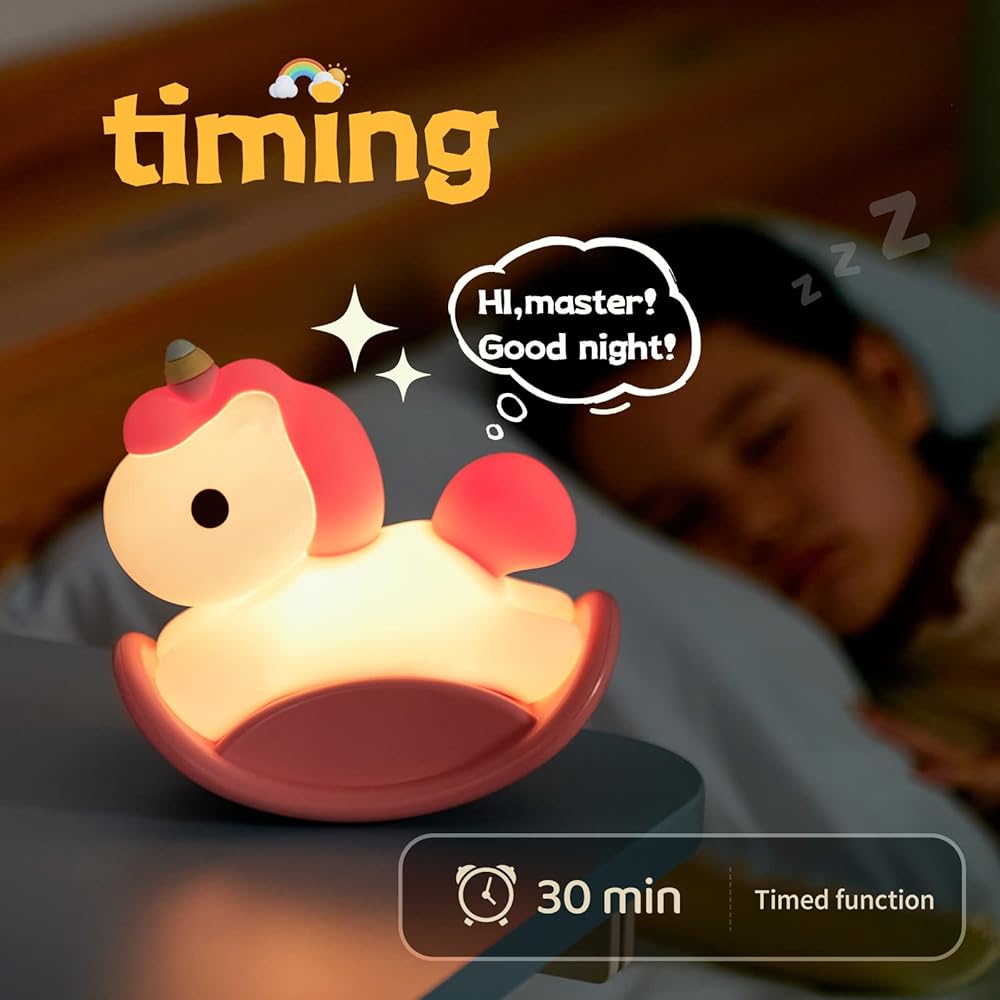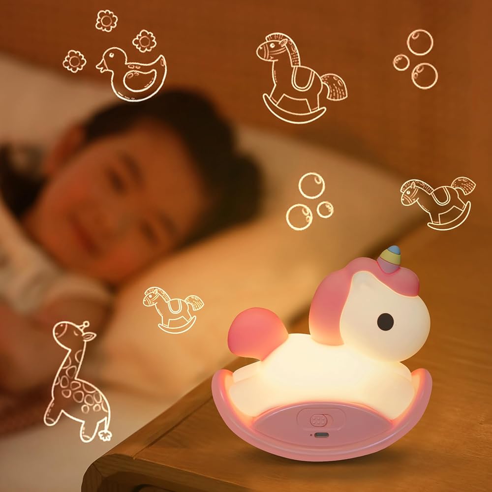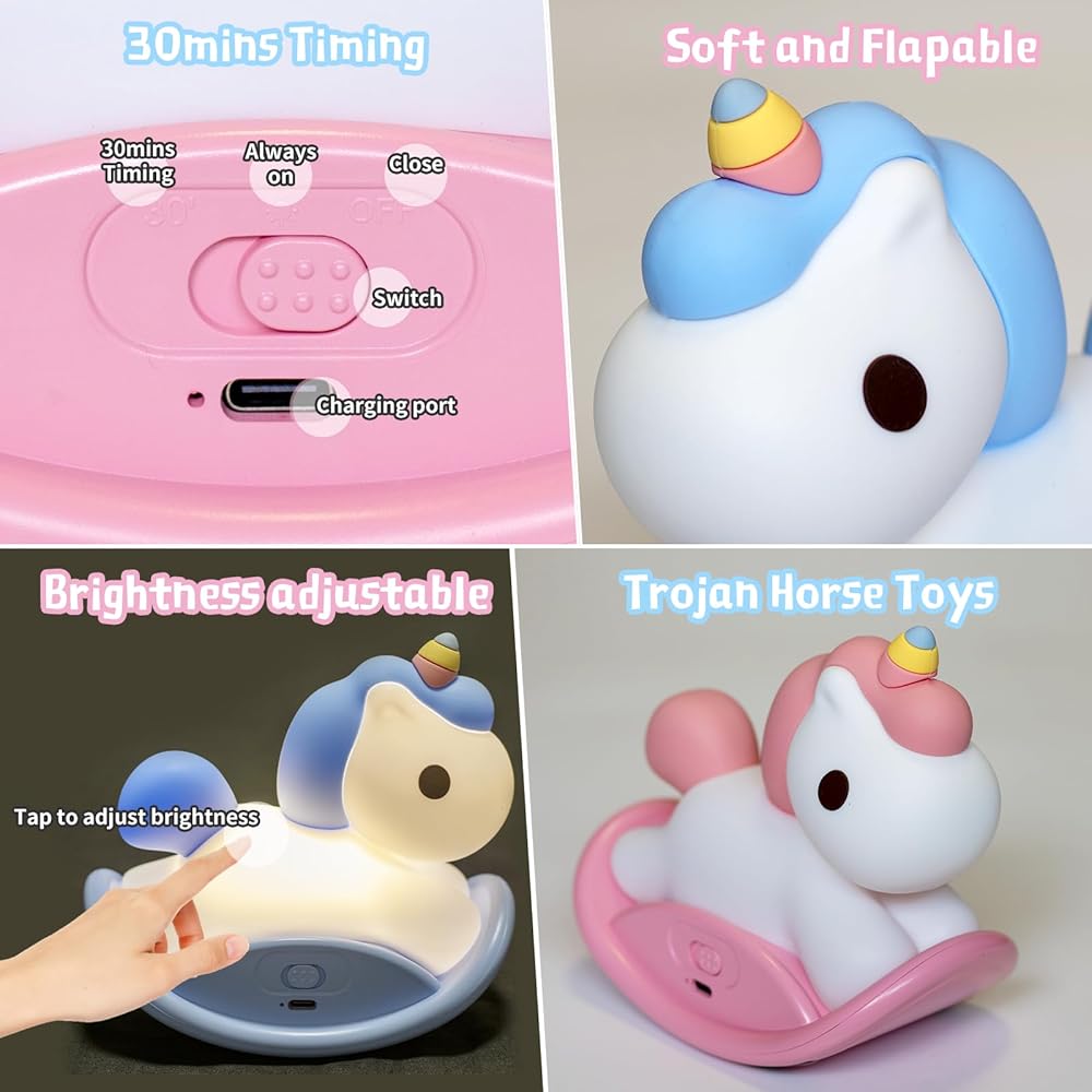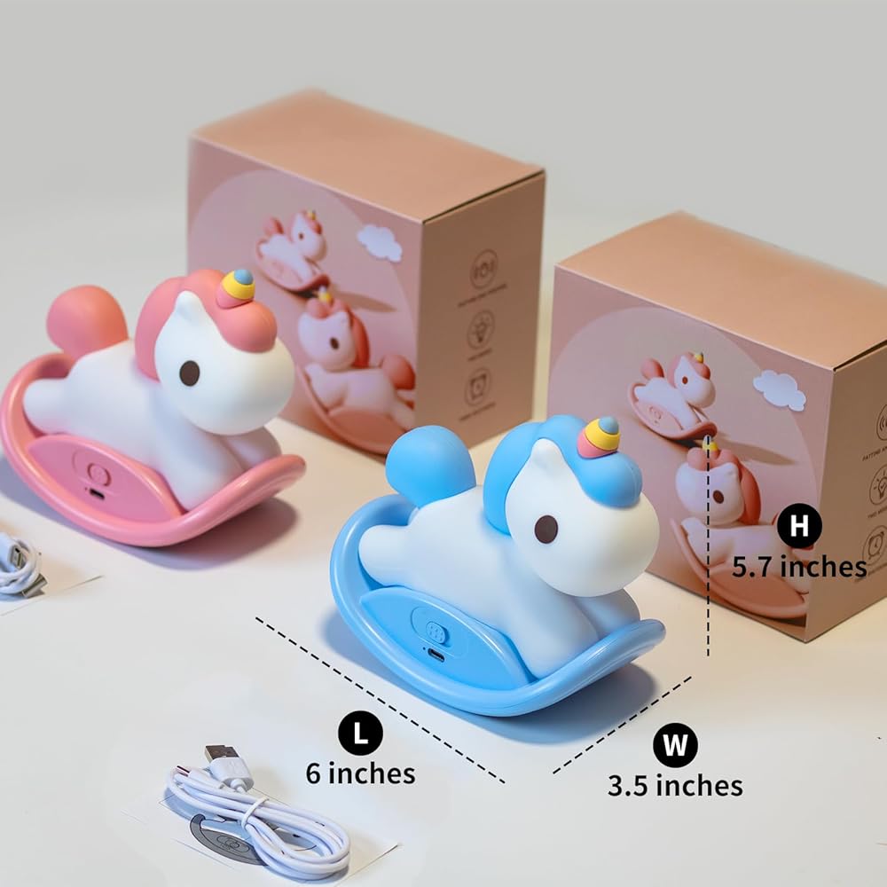 Unicorns Gifts for Girls: With cute unicorns shape and warm light, It is not only a practical bedside lamp, but also a very interesting rocking horse toy. You can use it in the bedroom of girls, boys, babies and toddlers as room decor.