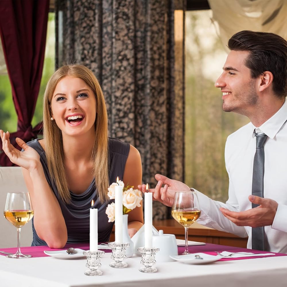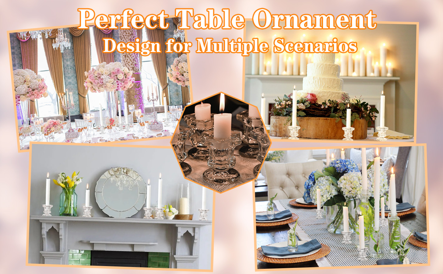 【Clear Crastal Material】Each candlestick holder formed entirely from glass, the smooth surface highlights sumptuous features. And the weight of candlestick holders allow you to use them safely, never tipping