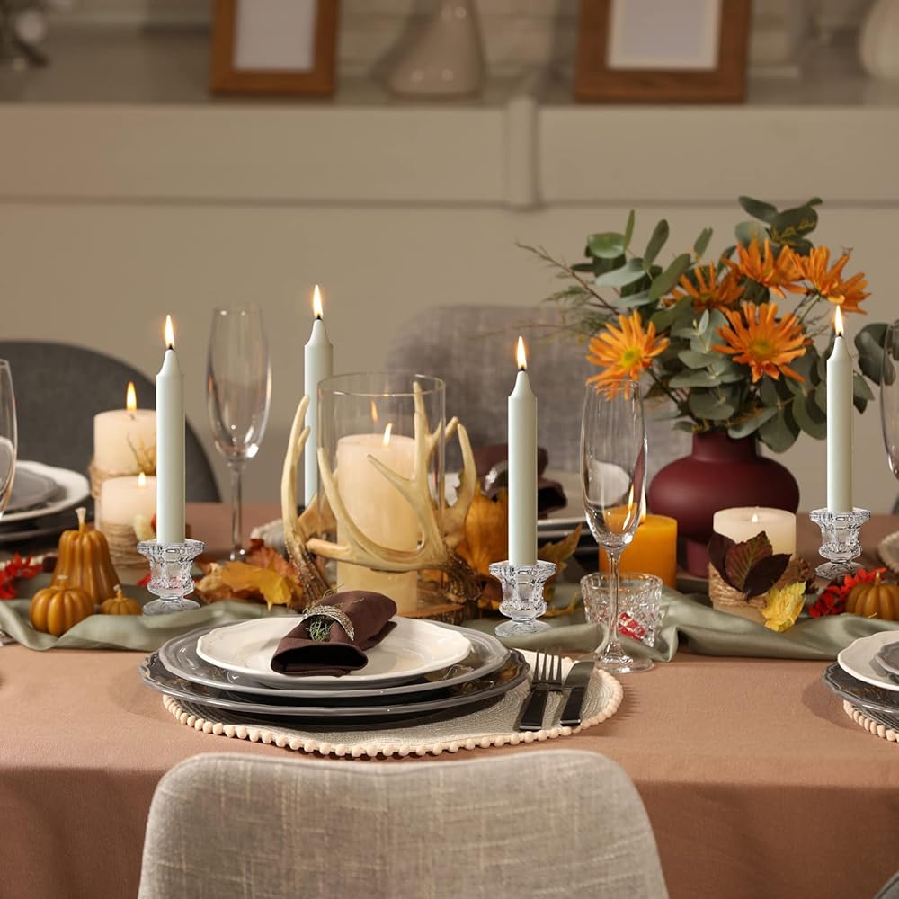 Glass Candlestick Holders, Set of 6 Clear Candle Holders for Taper Candles Small Table Centerpiece Decor for Wedding Birthday Party Thanksgiving Christmas Candlelight Dinner Decoration